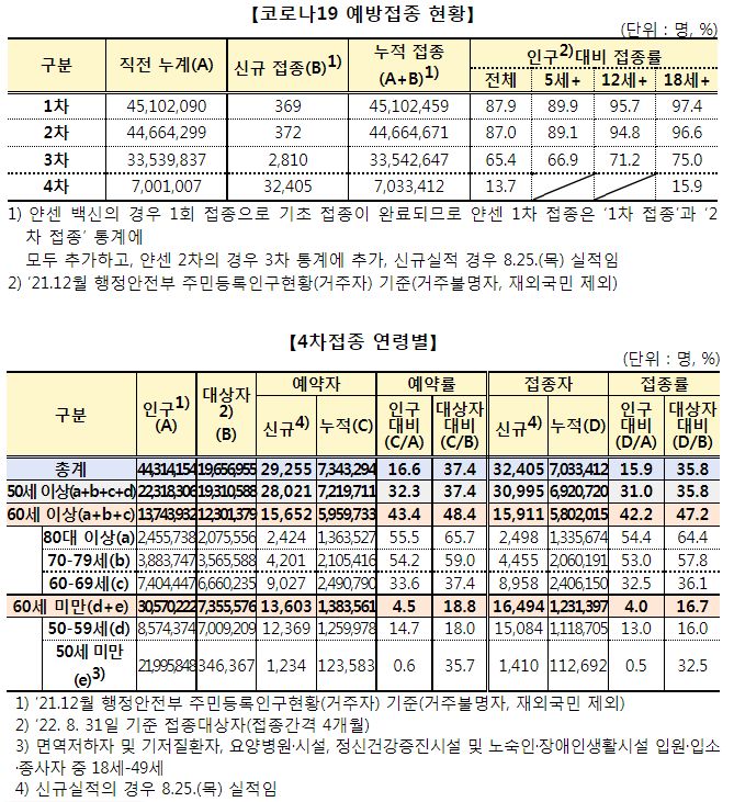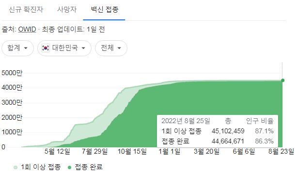 | 코로나19(2022.8.25. 0시기준)□ 확진 +11만, 사망 +108명★, 중환자병상가동률 46%, 재택치료 67만/:/ 주간 백신접종현황 (0) | 2022.08.25 |