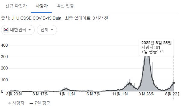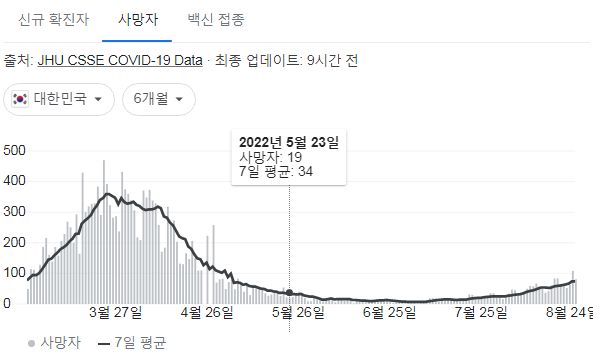 | 코로나19집계(2022.8.28. 0시기준) 확진 +8.5만, 사망 +70명, 중환자병상가동률 43%, 재택치료 64만/:/ 요즘 유행집계를 본 소감 (0) | 2022.08.28 |