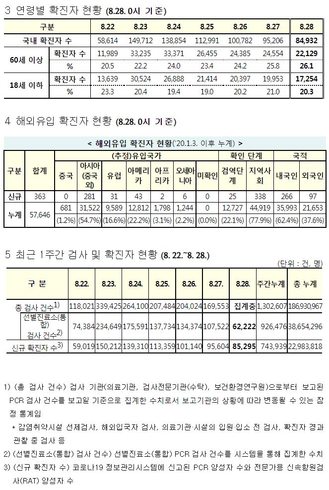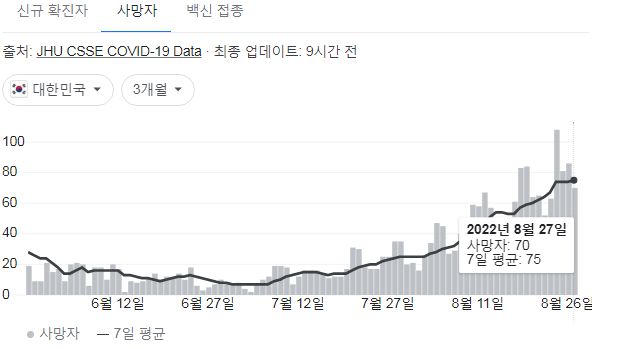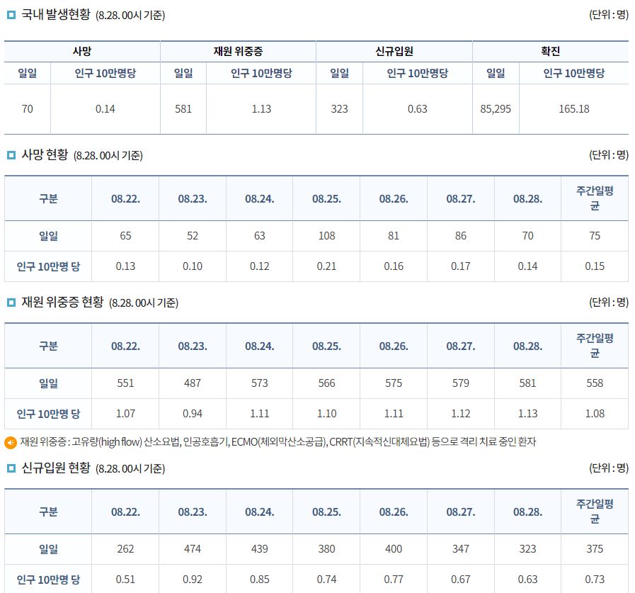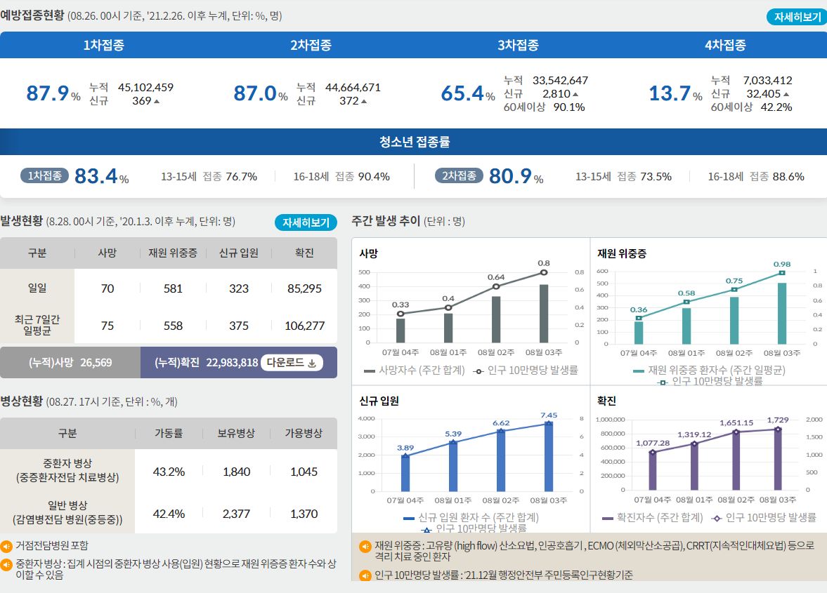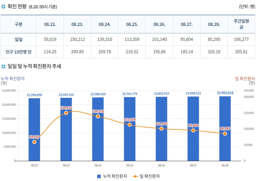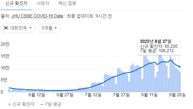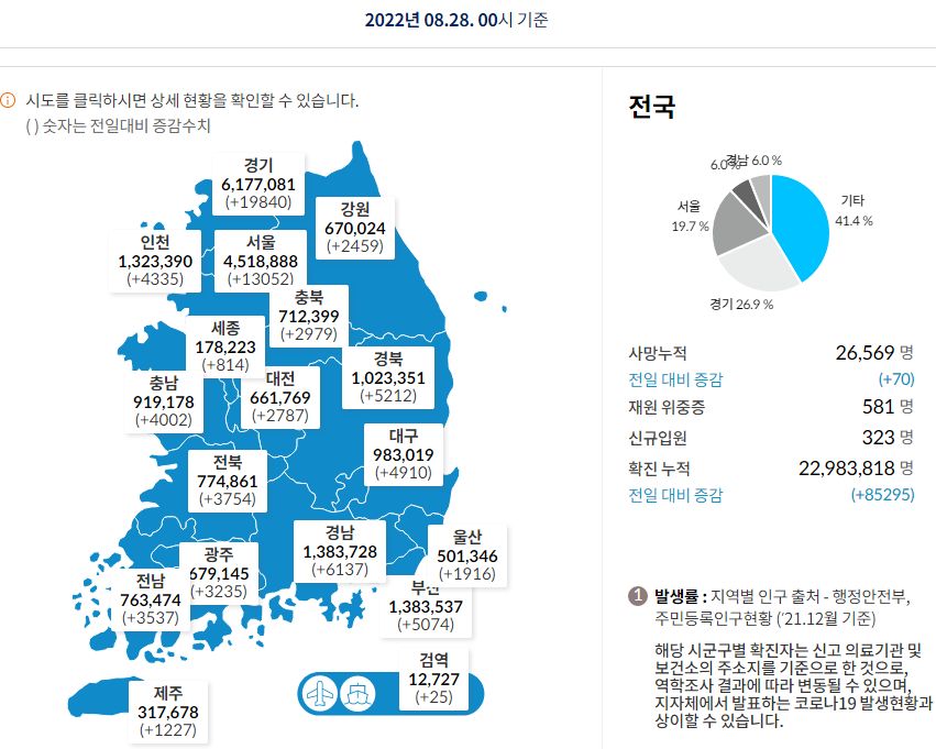 코로나19집계(2022.8.28. 0시기준) 확진 +8.5만, 사망 +70명, 중환자병상가동률 43%, 재택치료 64만/:/ 요즘 유행집계를 본 소감 본문