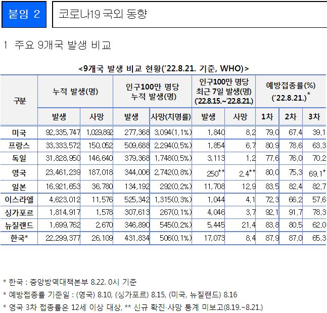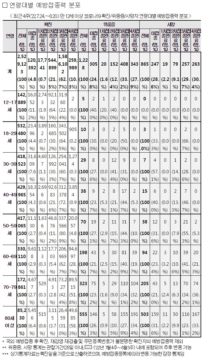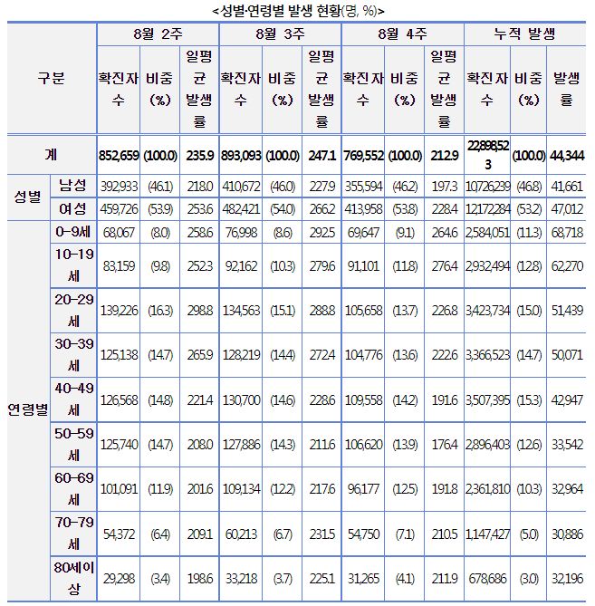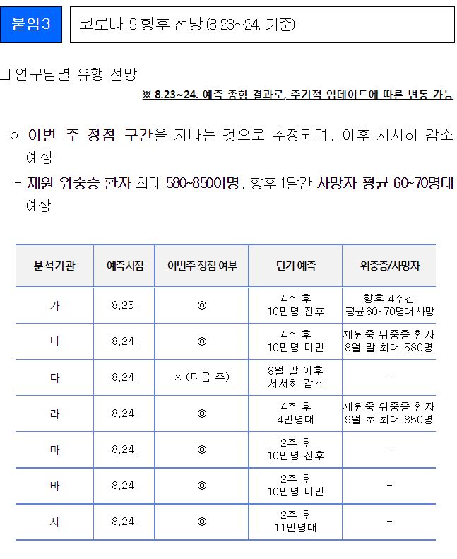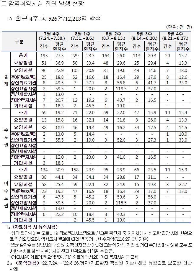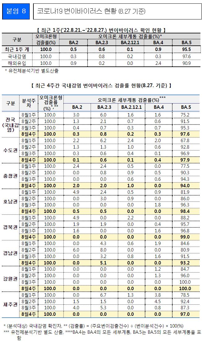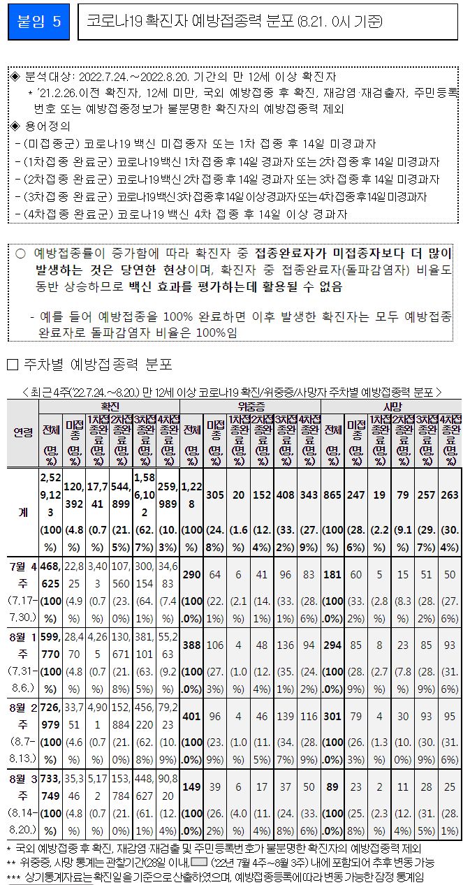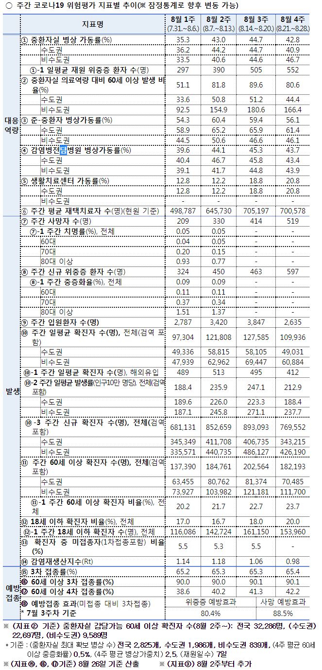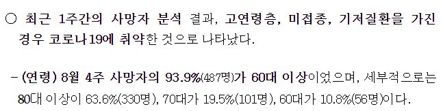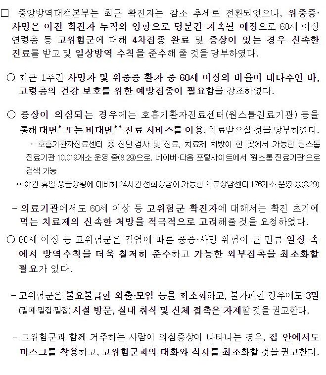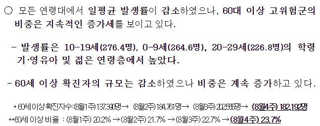 일부 발췌입니다. 출처는 8월 30일 질병관리청 브리핑입니다.