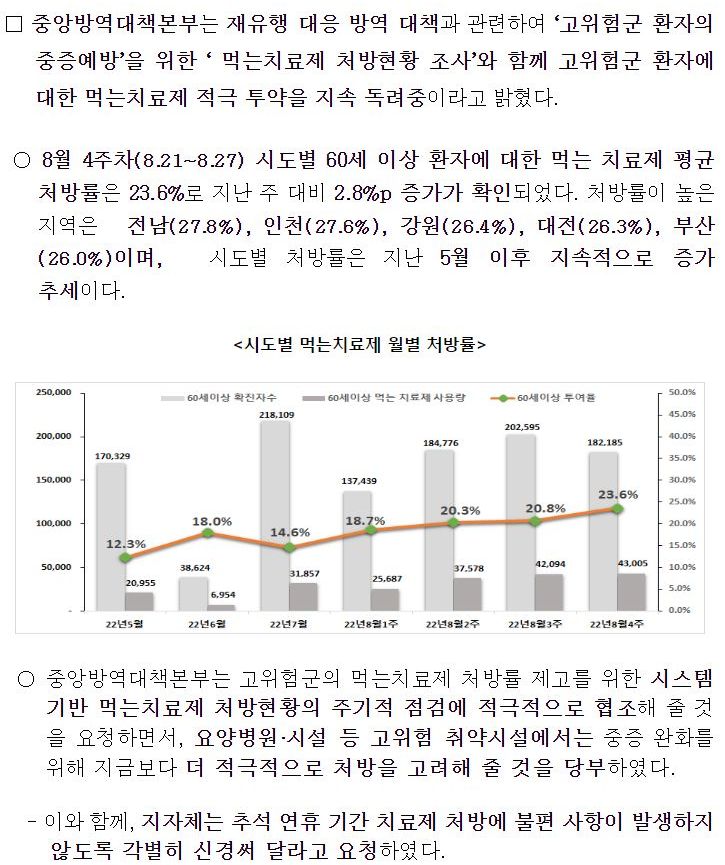 고위험군환자에 대한 먹는 치료제 투약 관련