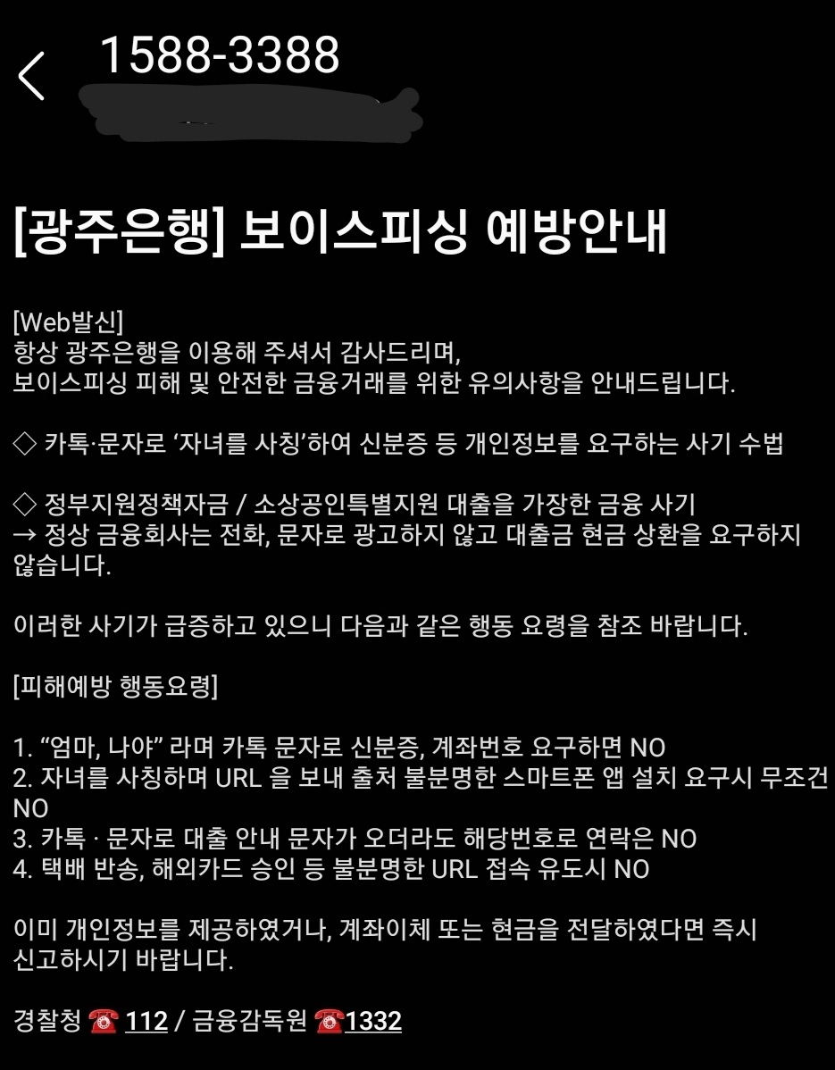광주은행, 보이스피싱예방 안내문자 본문