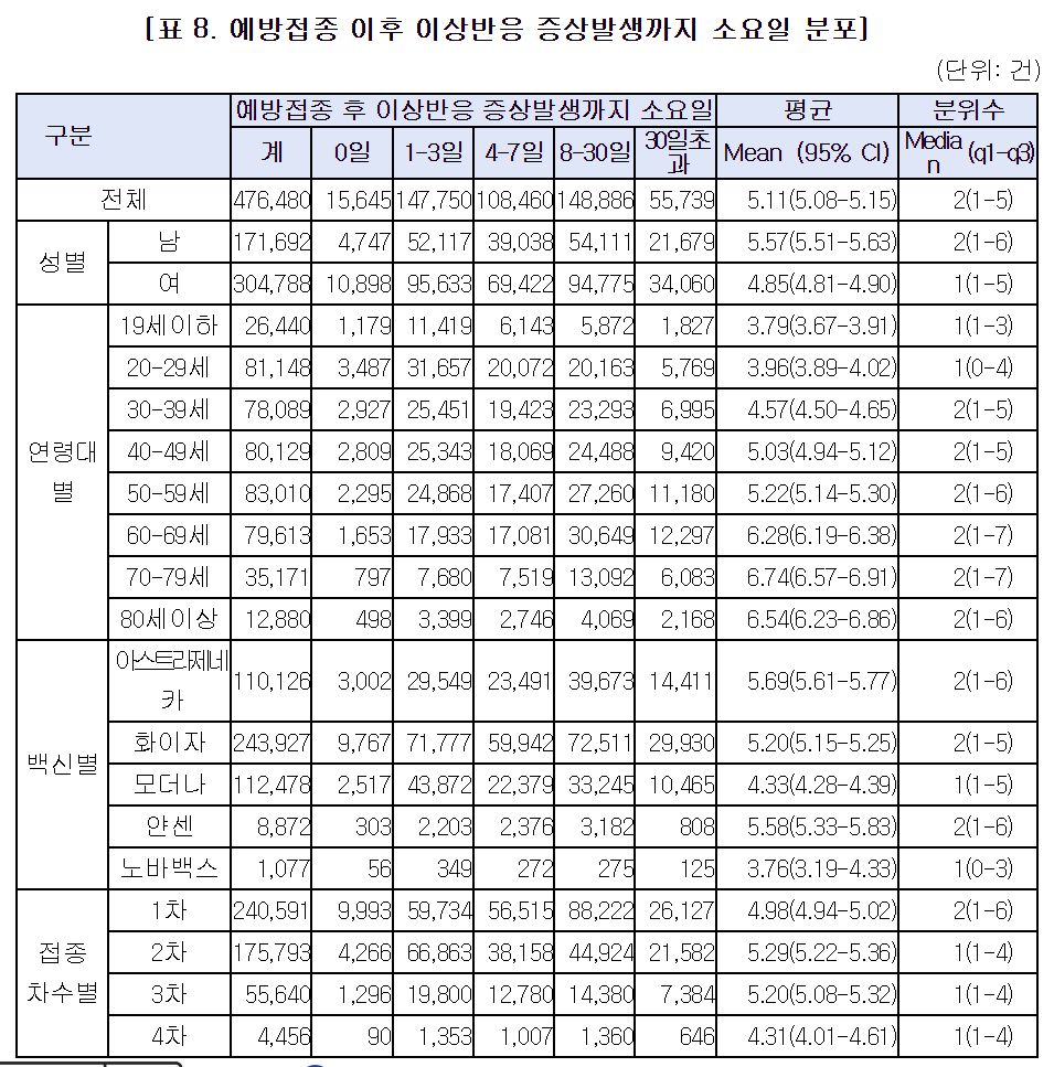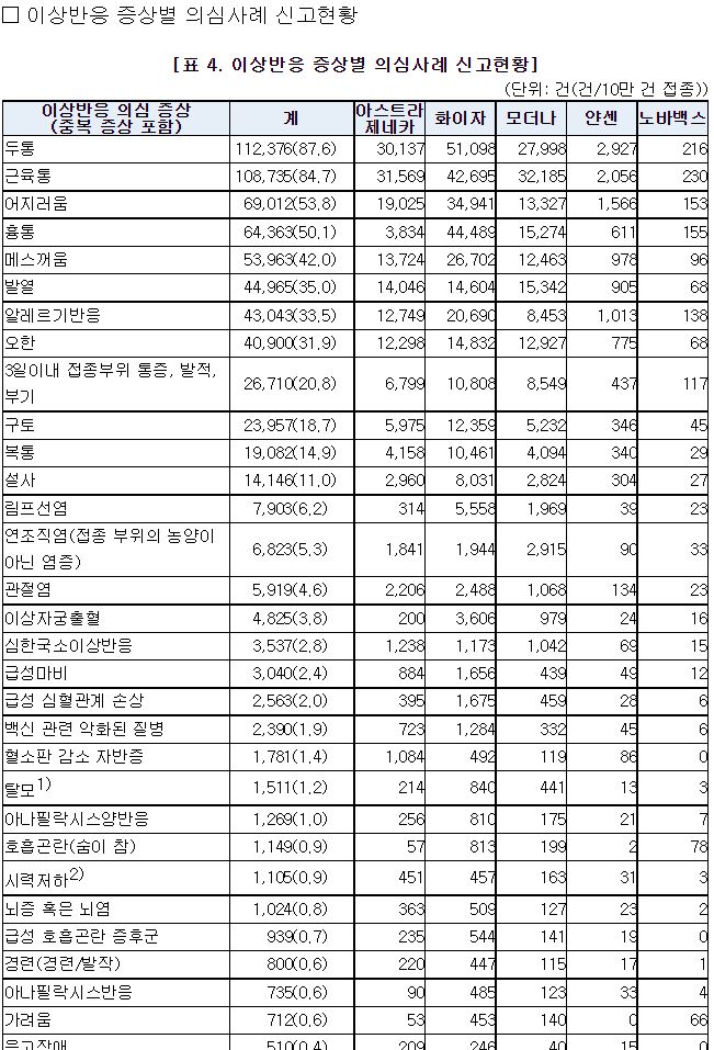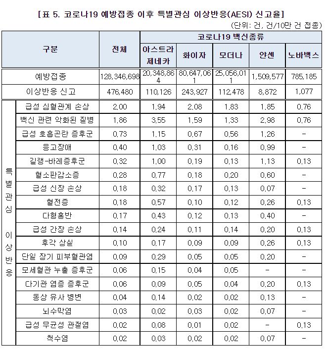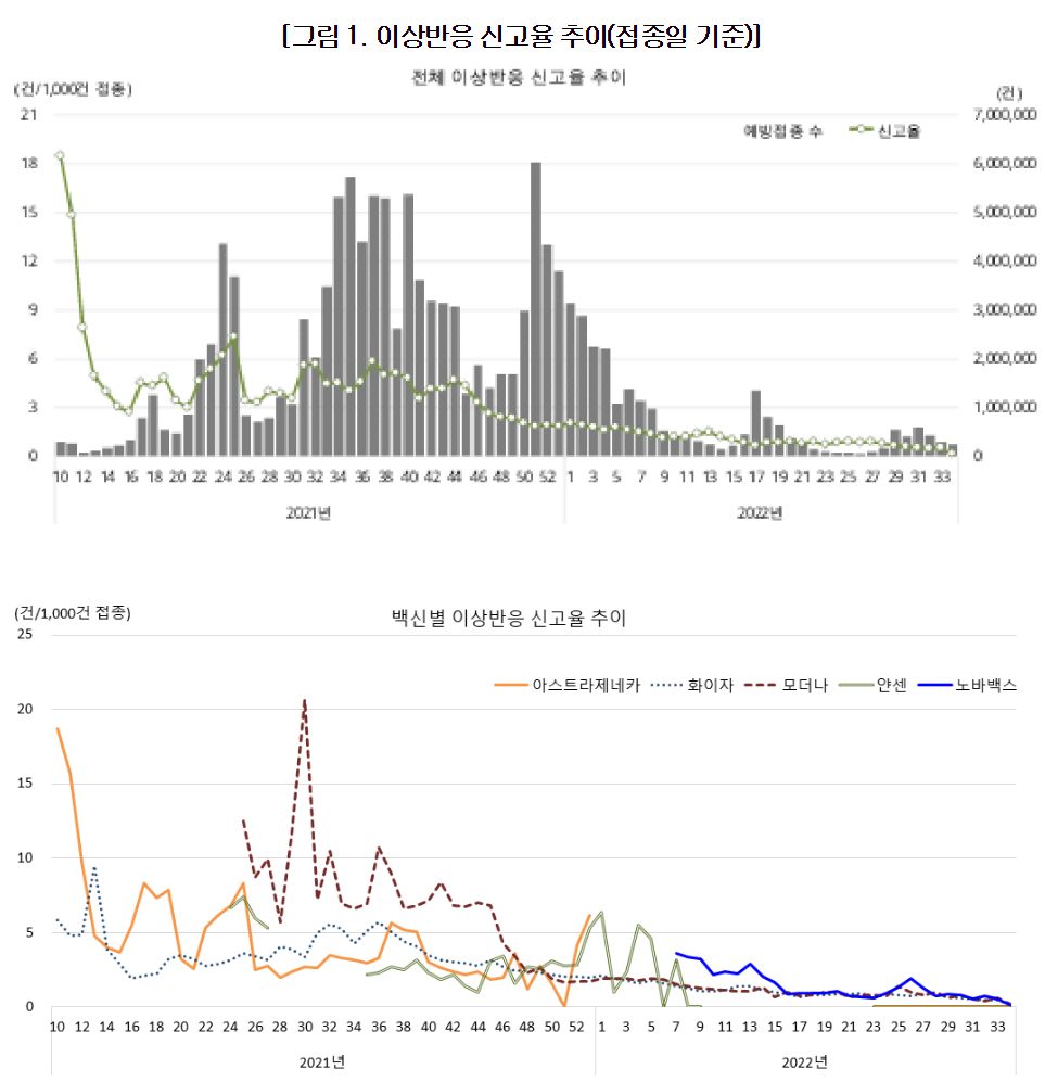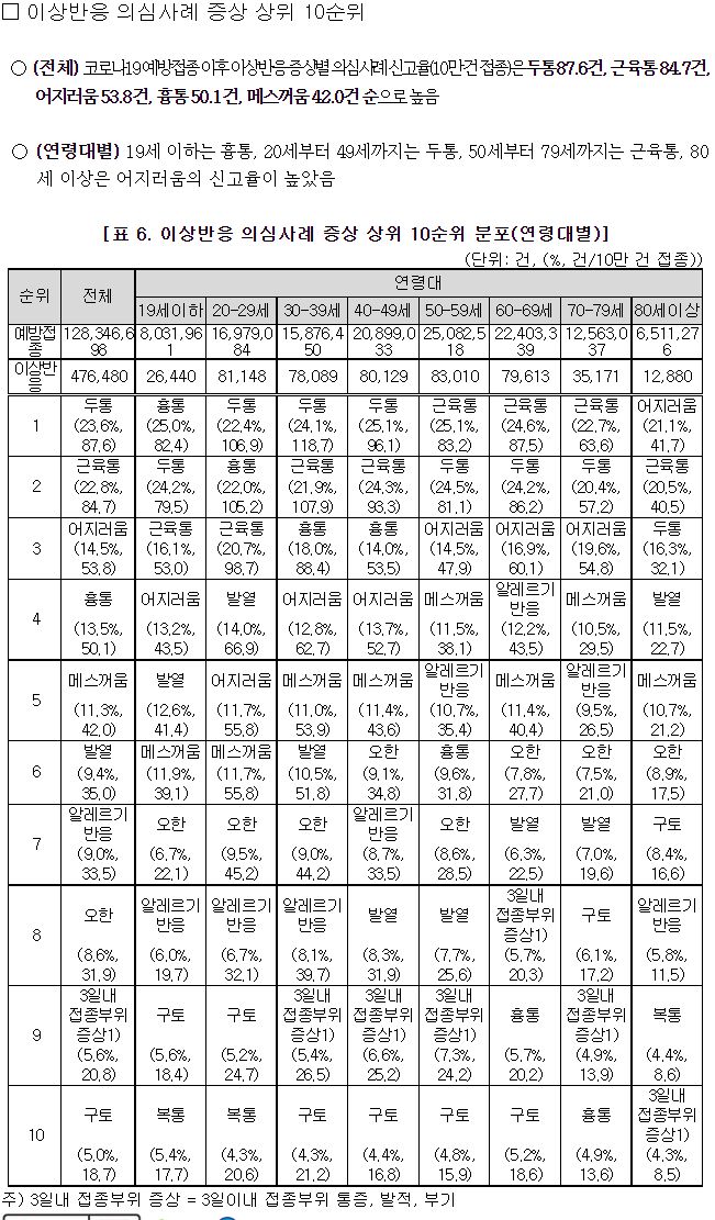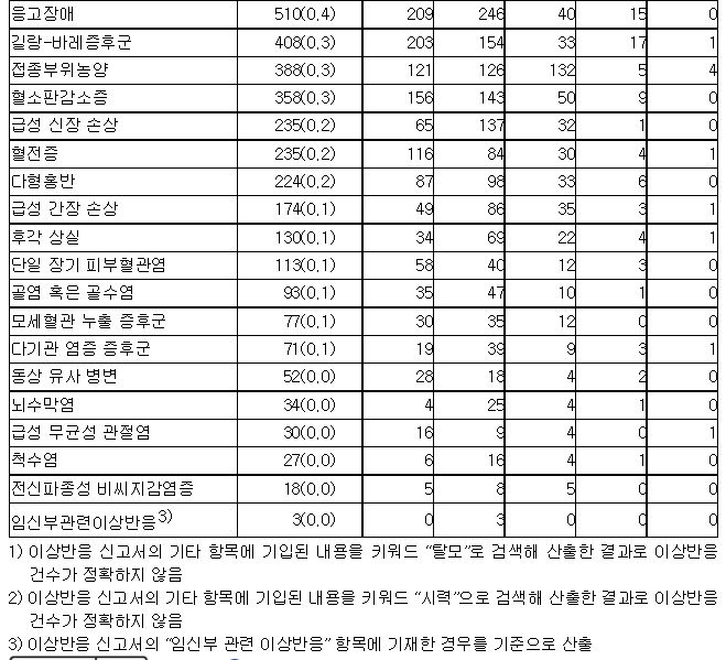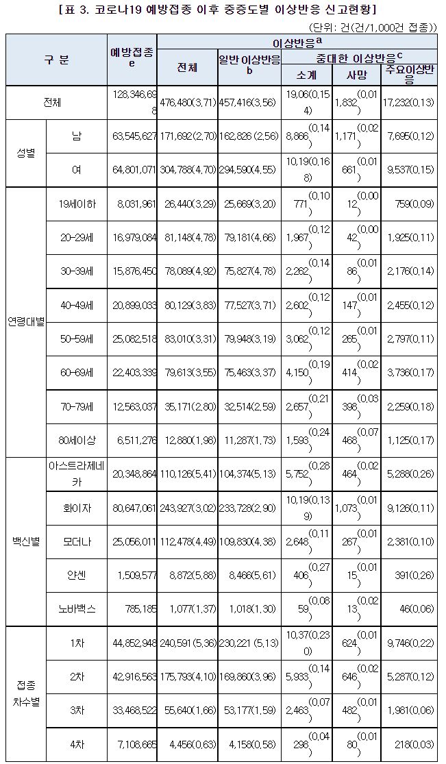 * 이상반응 신고통계는 ‘만 나이’ 기준 예방접종 건수를 기반으로 산출