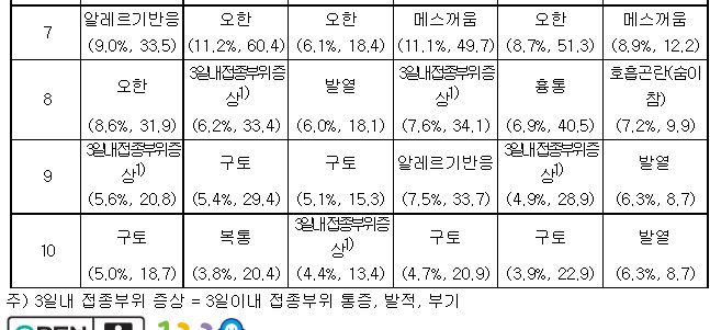 ◈ 예방접종 이후 아래와 같은 증상이 새롭게 발생하거나 악화되어 지속되는 경우