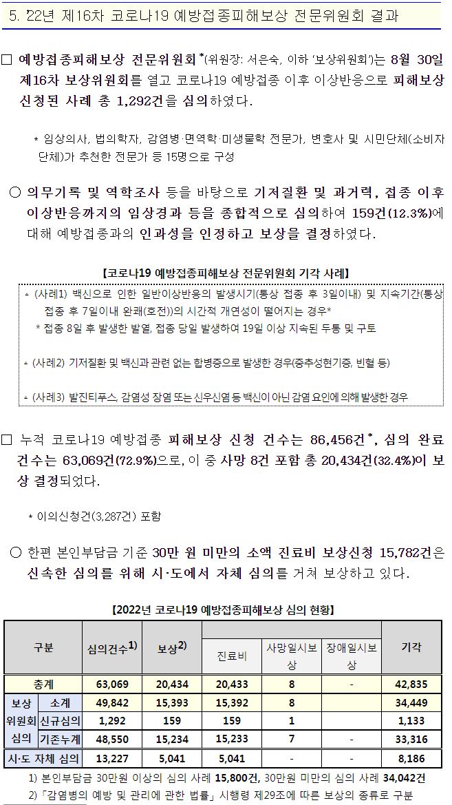 ’22년 제16차 코로나19 예방접종피해보상 전문위원회 결과