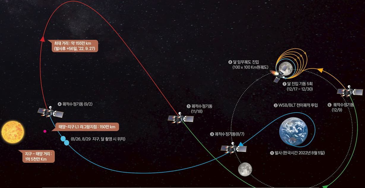 다누리호가 달궤도까지 가는 여정을 그린 그림