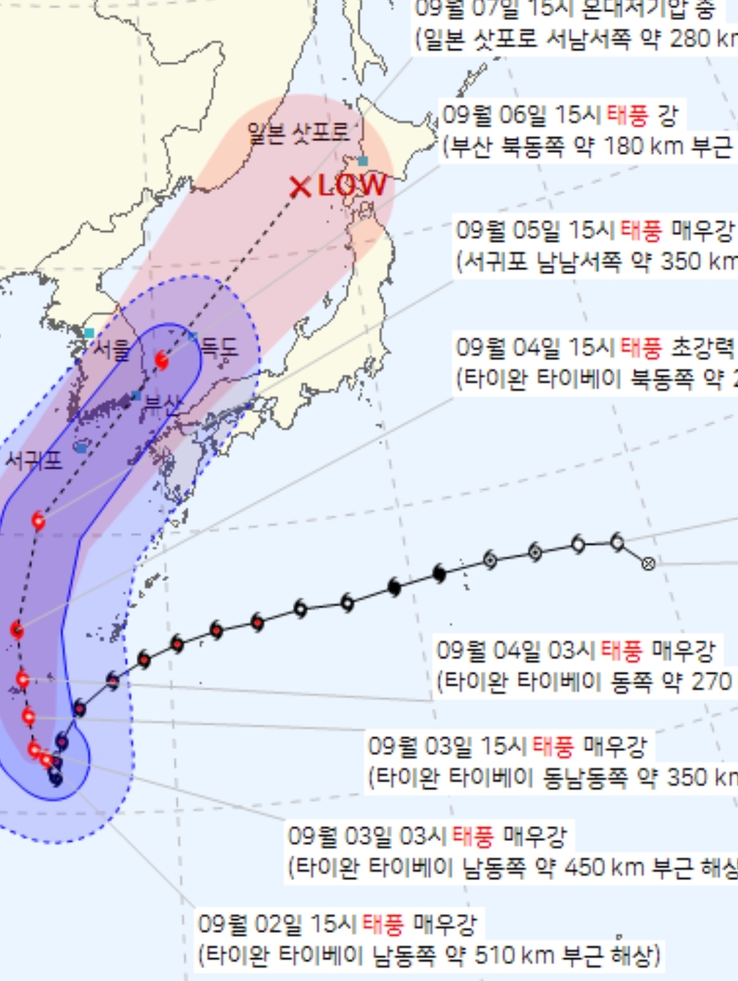 @ 참고. 이번 태풍에 대해 정리한 기상청 유튜브. 어제인 9월 1일자.
