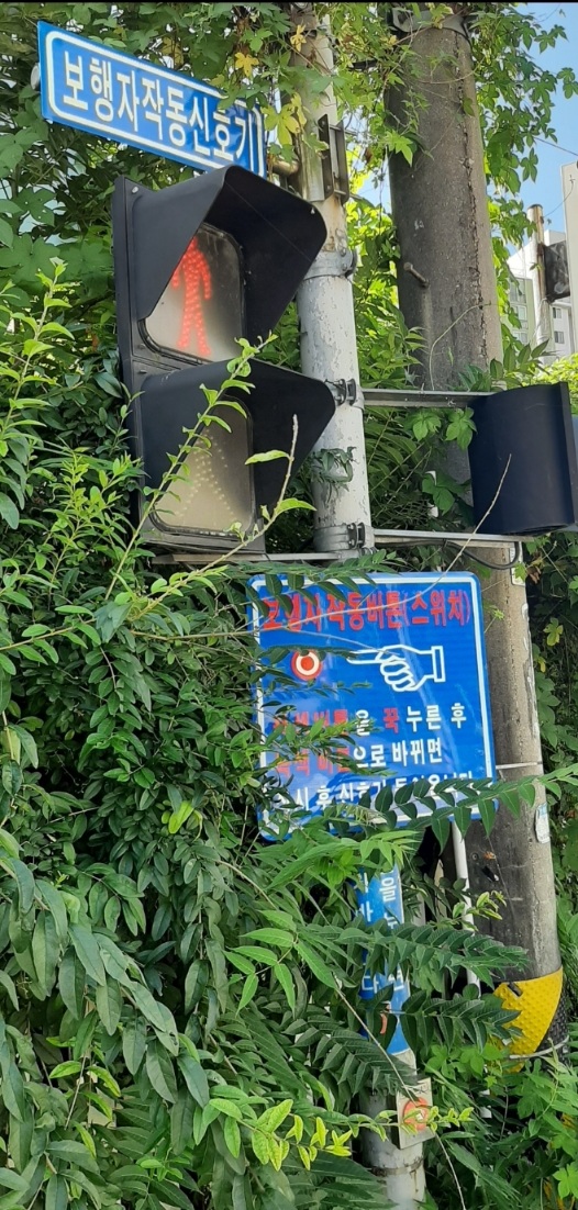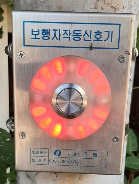 ※ 초등학교 앞 횡단보도에도 비슷하게 동작하는 장치가 있는 것을 본 적 있는데, 거기는 비교적 규칙적으로 보행자신호가 들어오면서 누를 수 있게 한 것이었고, 저런 한적한 도로는 안 누르면 보행신호가 들어오는 것 같더군요. 설치지점이나 설치목적따라 적당히 조절하는지도 모르겠습니다.