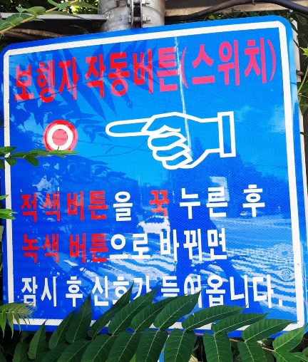 이 버튼을 누르고 한동안 기다리면, 교통신호를 봐서 횡단보도에 파란불(녹색불)이 들어옵니다.