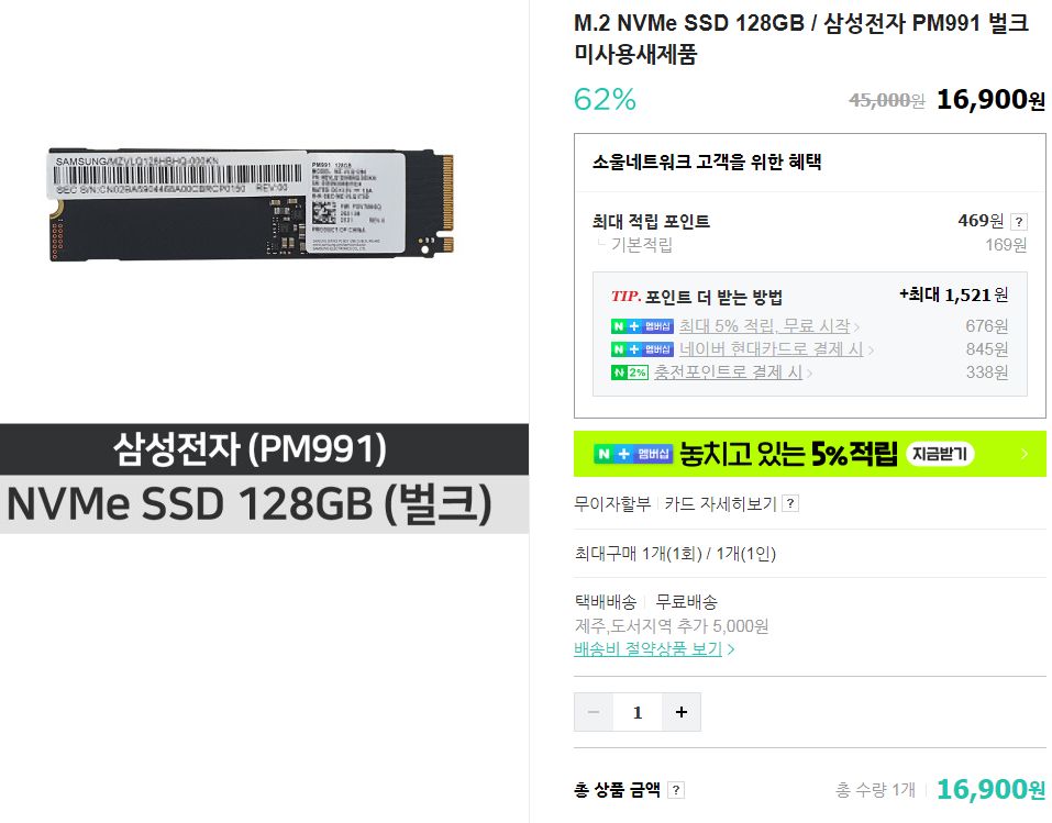M.2 NVMe SSD 128GB / 삼성전자 PM991 벌크 미사용새제품 : 소울네트워크