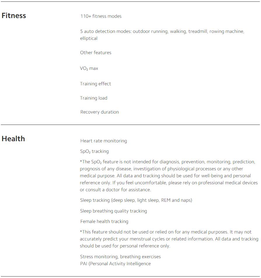 *The SpO₂ feature is not intended for diagnosis, prevention, monitoring, prediction, prognosis of any disease, investigation of physiological processes or any other medical purpose. All data and tracking should be used for well-being and personal reference only. If you feel uncomfortable, please rely on professional medical devices or consult a doctor for assistance.
