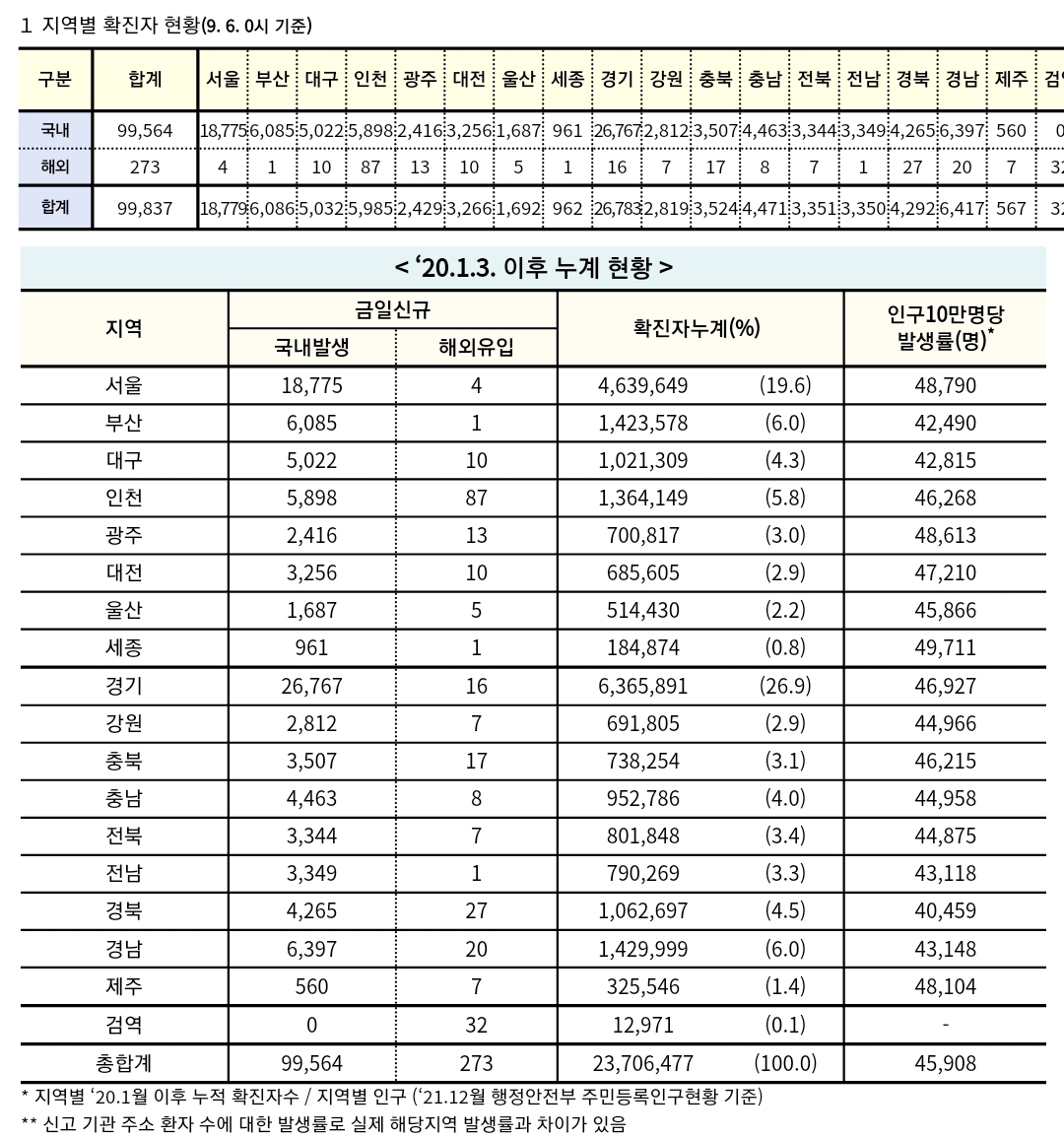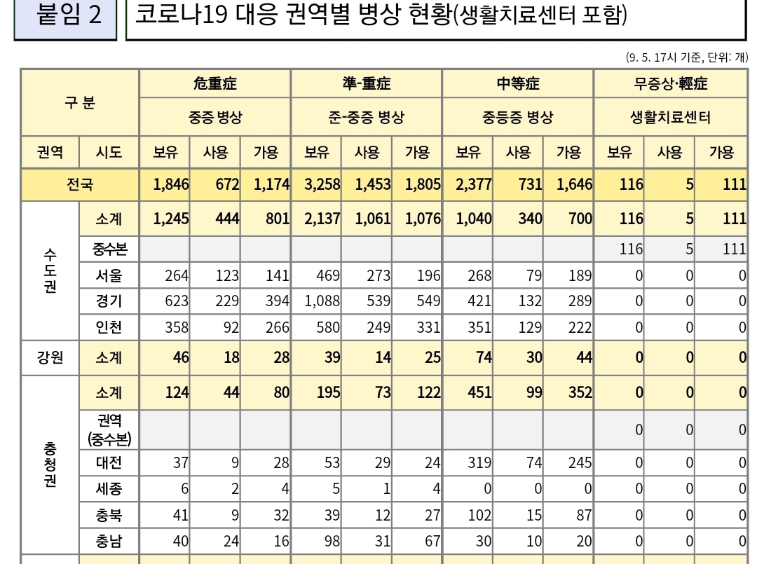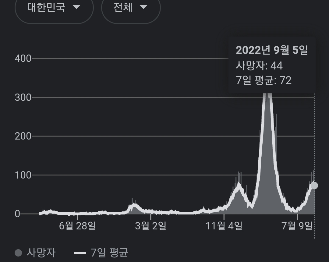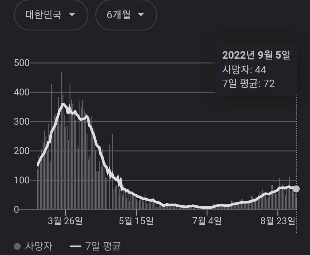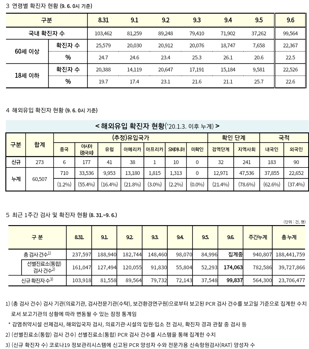 코로나19집계(2022.9.6. 0시기준) 확진 +10.0만, 사망 +44명, 중환자병상가동률 36%, 재택치료 44만 본문