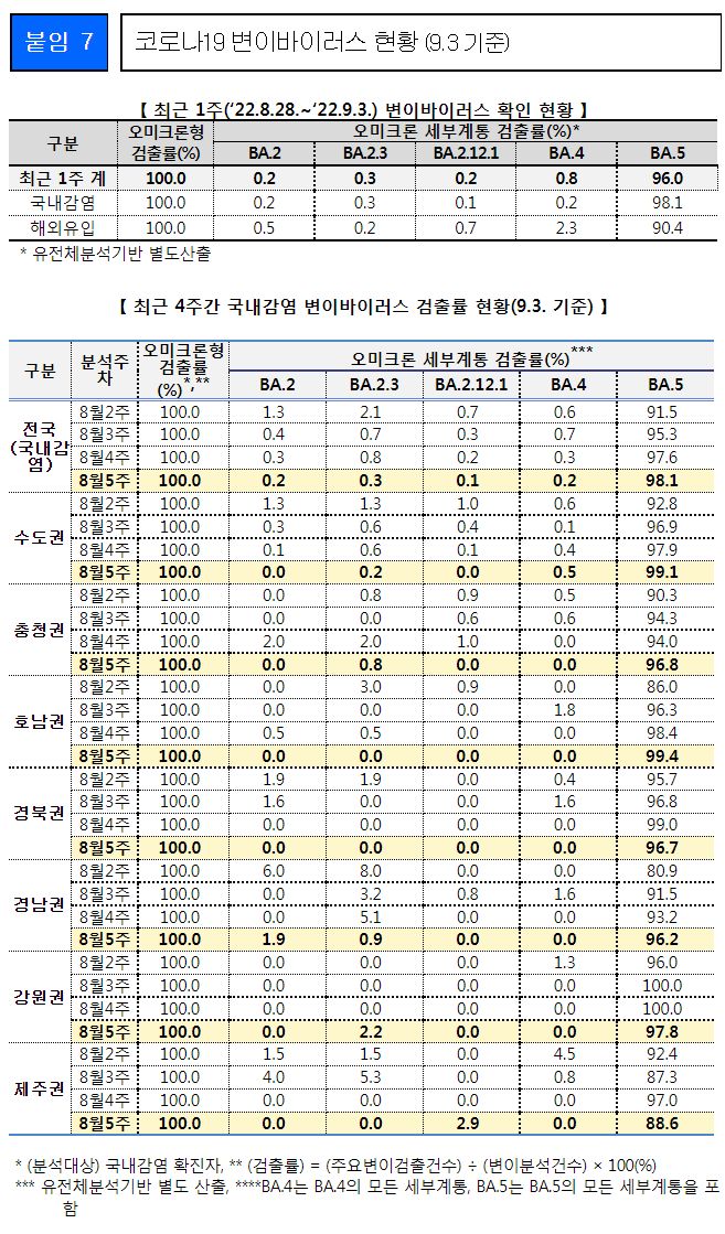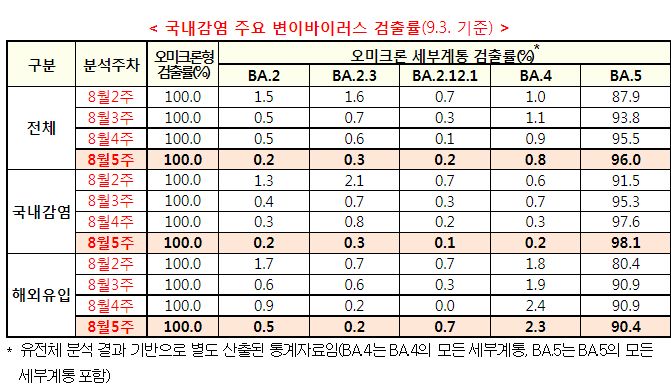변이바이러스 분석: 오미크론 100%(BA.5 96%)