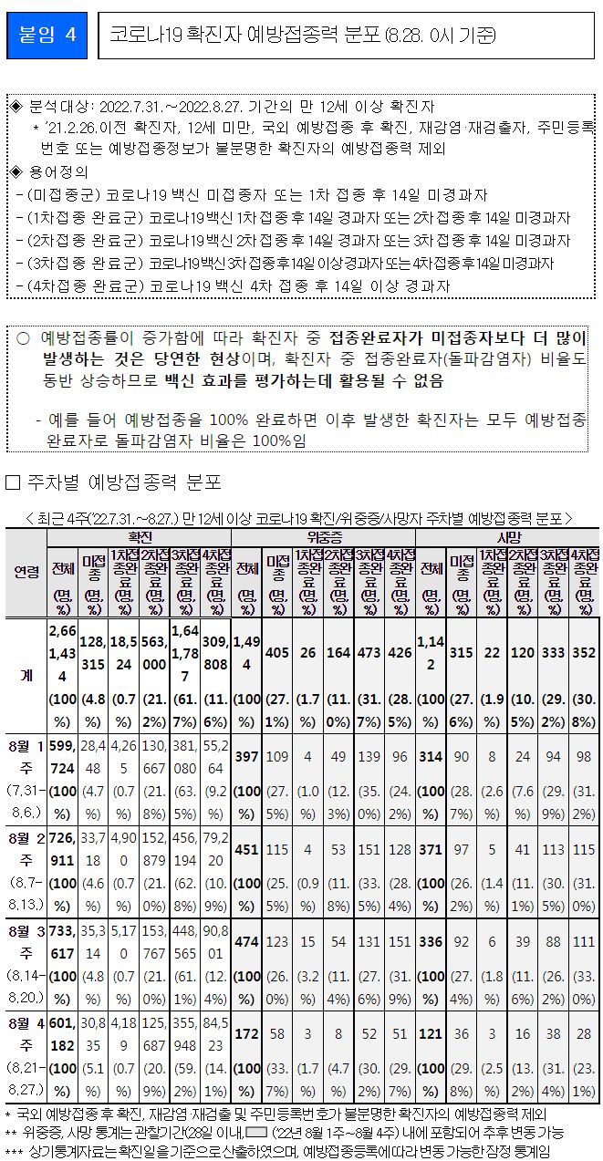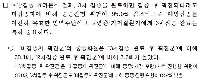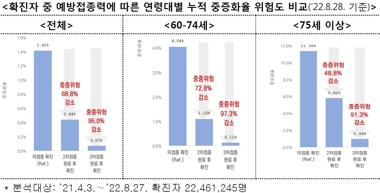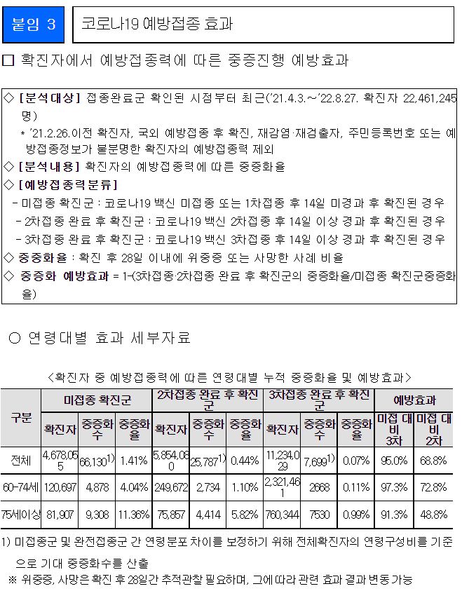 예방접종효과 분석, 중증화율, 사망율 등