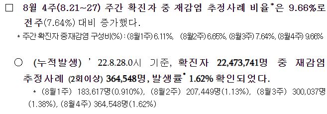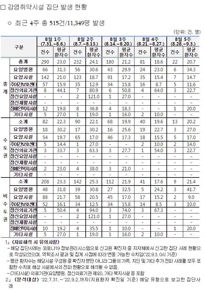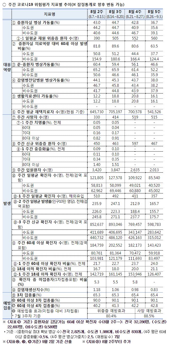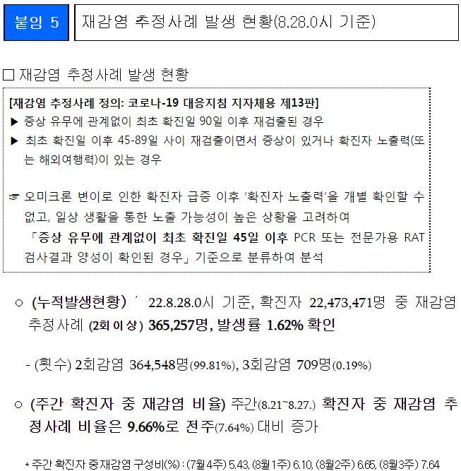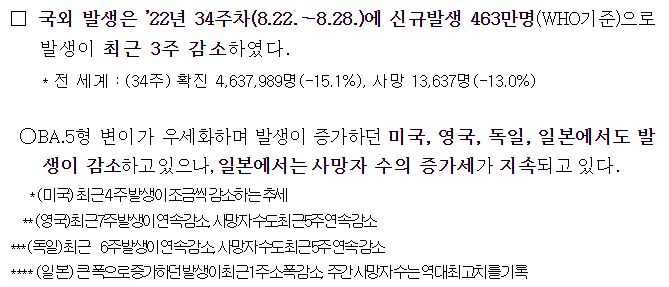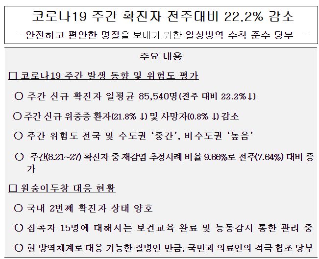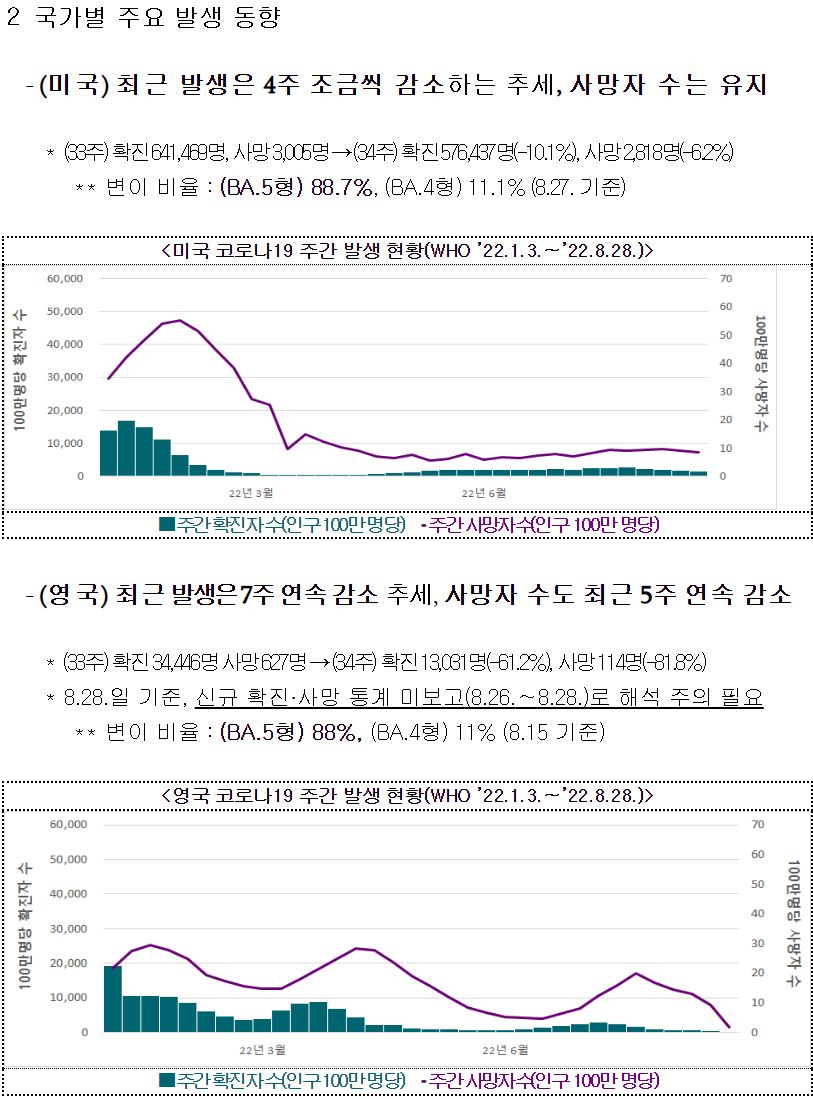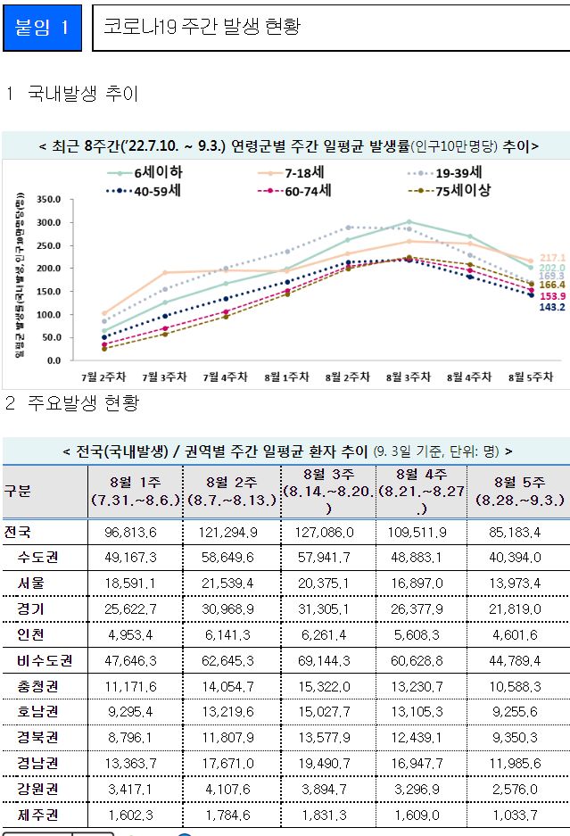 코로나19(2022.9.6) 주간 발생 동향 및 위험도 평가 본문
