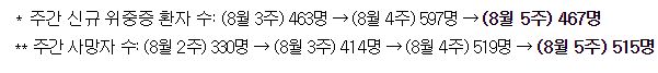 | 코로나19집계(2022.9.5. 0시기준) 확진 +3.8만, 사망 +56명, 중환자병상가동률 36%, 재택치료 47만 (0) | 2022.09.05 |