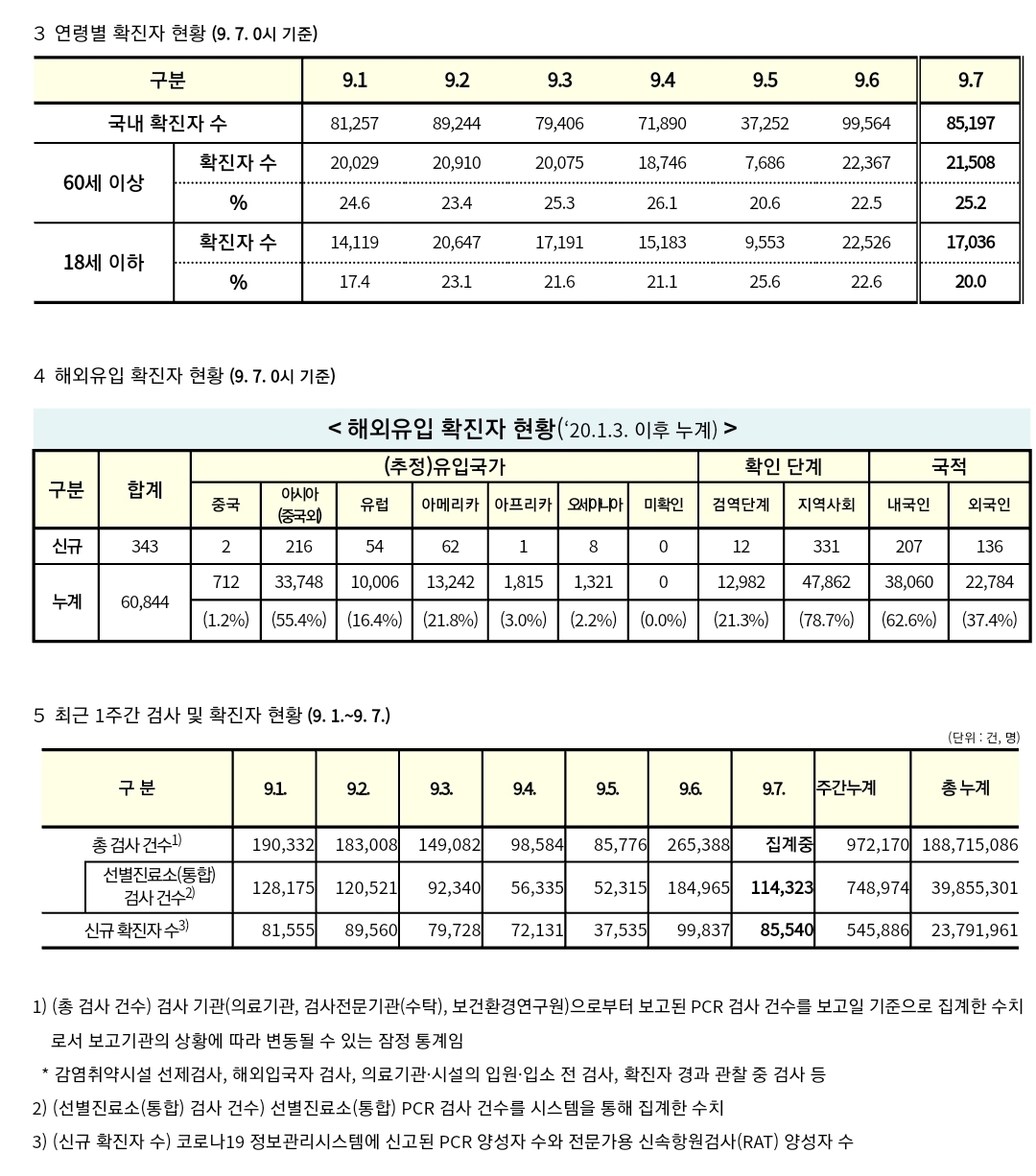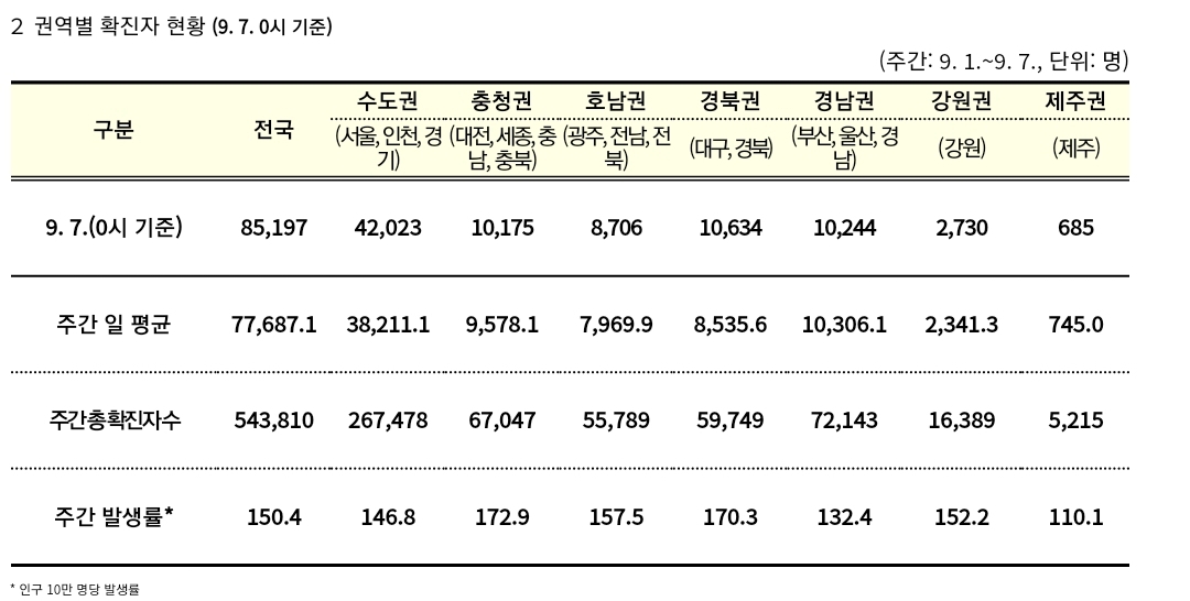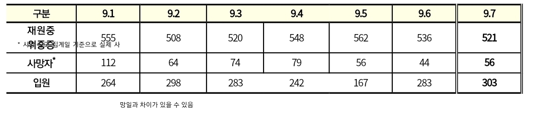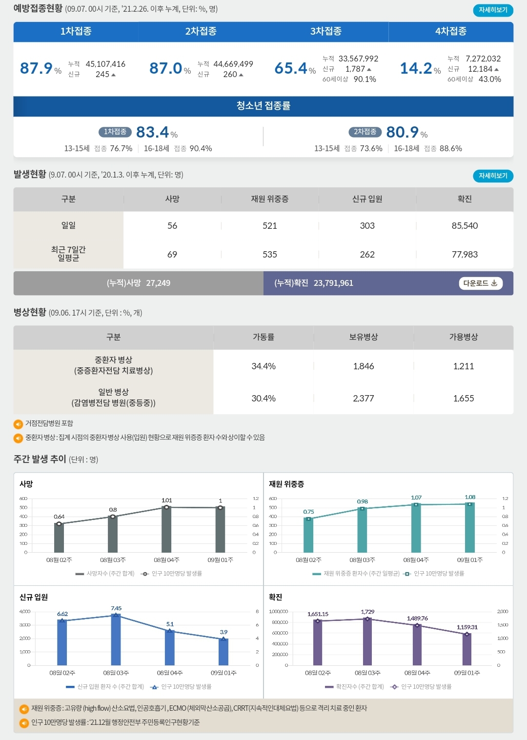 코로나19집계(2022.9.7. 0시기준) 확진 +8.6만, 사망 +56명, 중환자병실가동률 34%, 재택치료 44만 본문