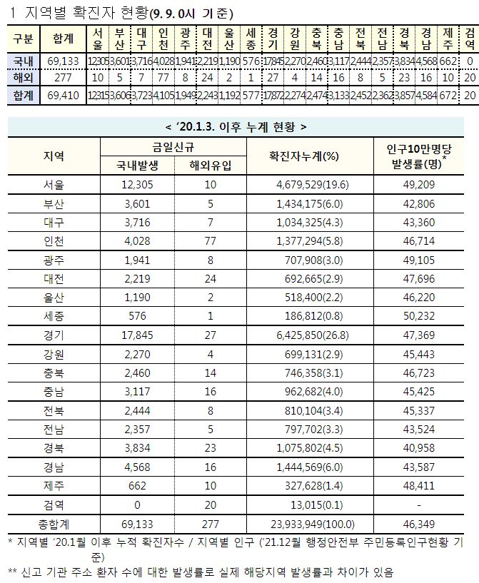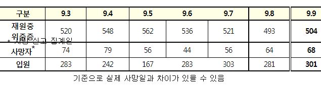 코로나19집계(2022.9.9. 0시기준) 확진 +6.9만, 사망 +68명, 중환자병상 가동률 32%, 재택치료 43만 본문