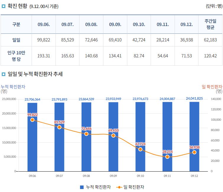 | 코로나19집계(2022.9.11. 0시기준) 확진 +2.8만, 사망 +47명, 중환자병상가동률 33%, 재택치료 38만 (0) | 2022.09.11 |