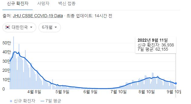 | 코로나19집계(2022.9.13. 0시기준) 확진 +5.7만, 사망 +35명, 중환자병상가동률 30%, 재택치료 30만 (0) | 2022.09.13 |