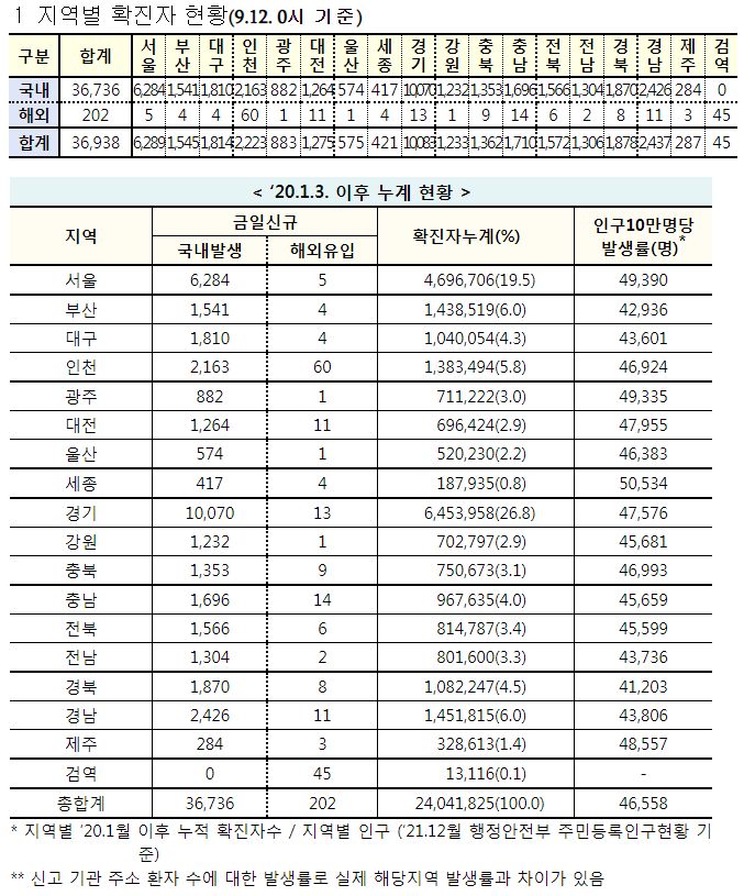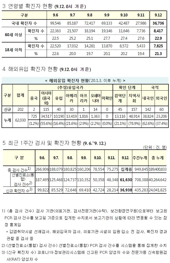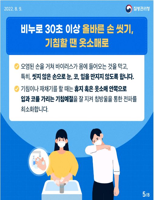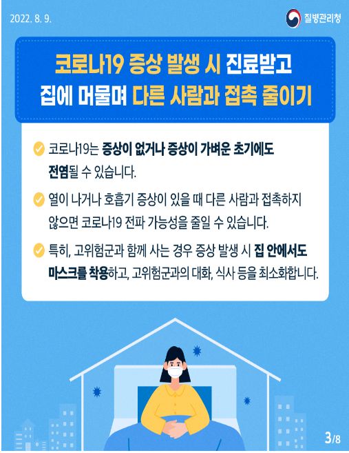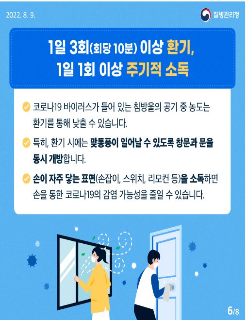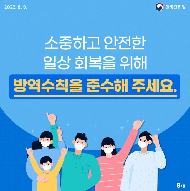 코로나19집계(2022.9.12. 0시기준) 확진 +3.7만, 사망 22명, 중환자병상가동률 32%, 재택치료 34만/:/ 일상 방역의 생활화 카드뉴스(6대 방역수칙) 본문