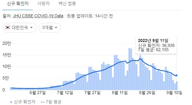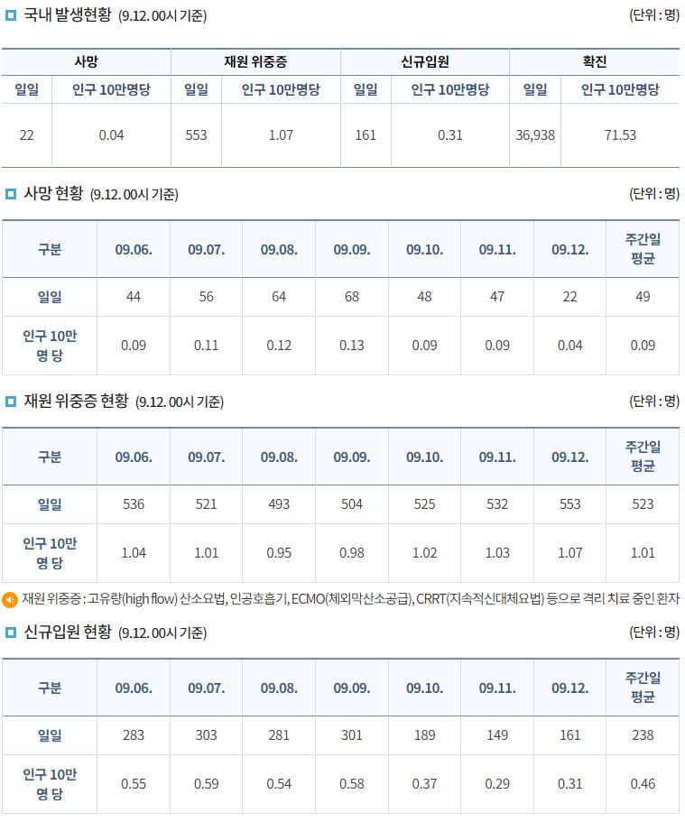 | 코로나19(2022.9.15. 0시기준) 확진 +7.1만, 사망 +72명, 중환자병상가동률 30% (0) | 2022.09.15 |
