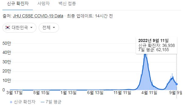 코로나19(2022.9.15. 0시기준) 확진 +7.1만, 사망 +72명, 중환자병상가동률 30% (0) | 2022.09.15 |