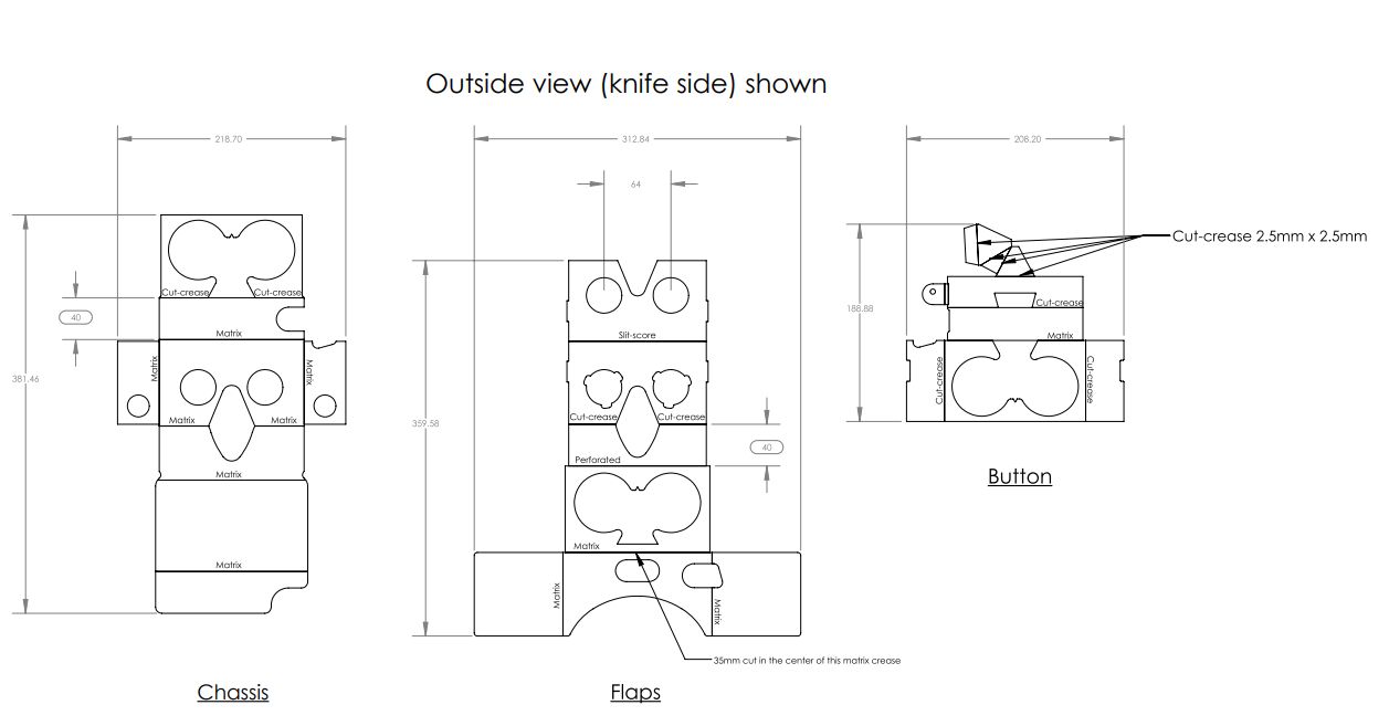 Production templates The Manufacturer Kit has been updated for the new Cardboard, with more detailed Cardboard-manufacturery goodness than ever before. The kit includes technical specifications and drawings for lenses, conductive strips, die-cut lines, and