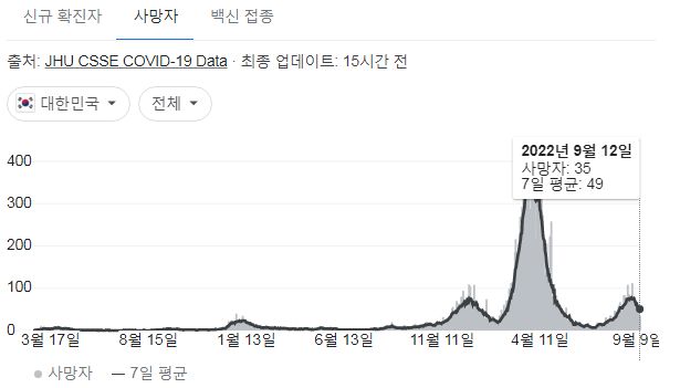 코로나19(2022.9.15. 0시기준) 확진 +7.1만, 사망 +72명, 중환자병상가동률 30% (0) | 2022.09.15 |