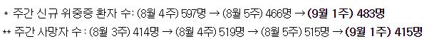 코로나19(2022.9.13) 주간 확진자 전주대비 2할 감소 본문