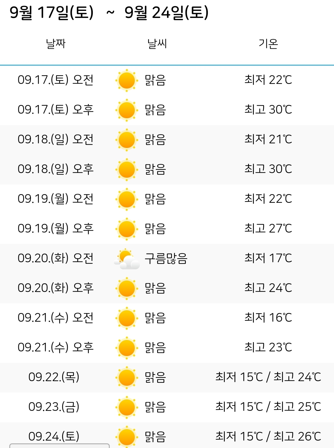 9월 하순이면 태풍도 없을 철이죠.