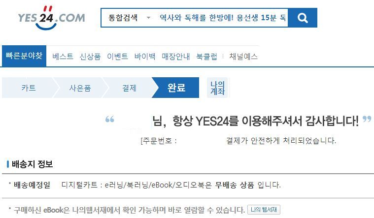 예를 들어, 국내 온라인 서점의 전자책 구매가 그렇죠.