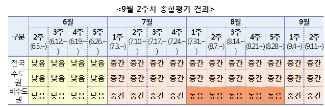 ○ 주간 위험도 전국 ‘중간’, 수도권 및 비수도권 ‘중간’