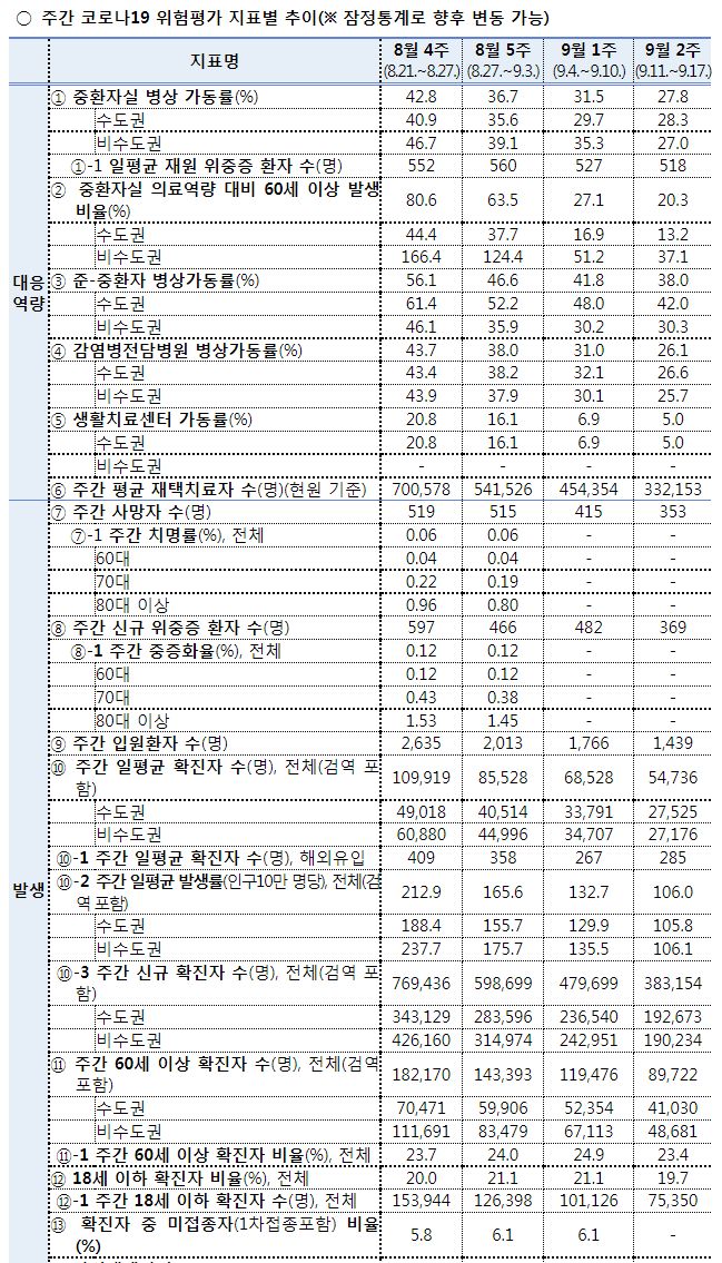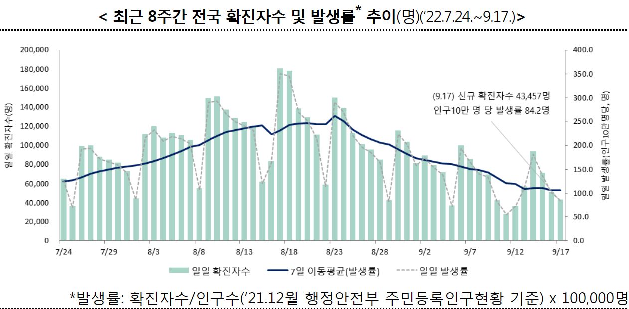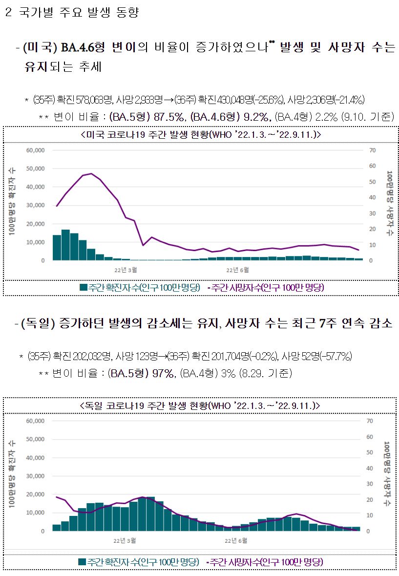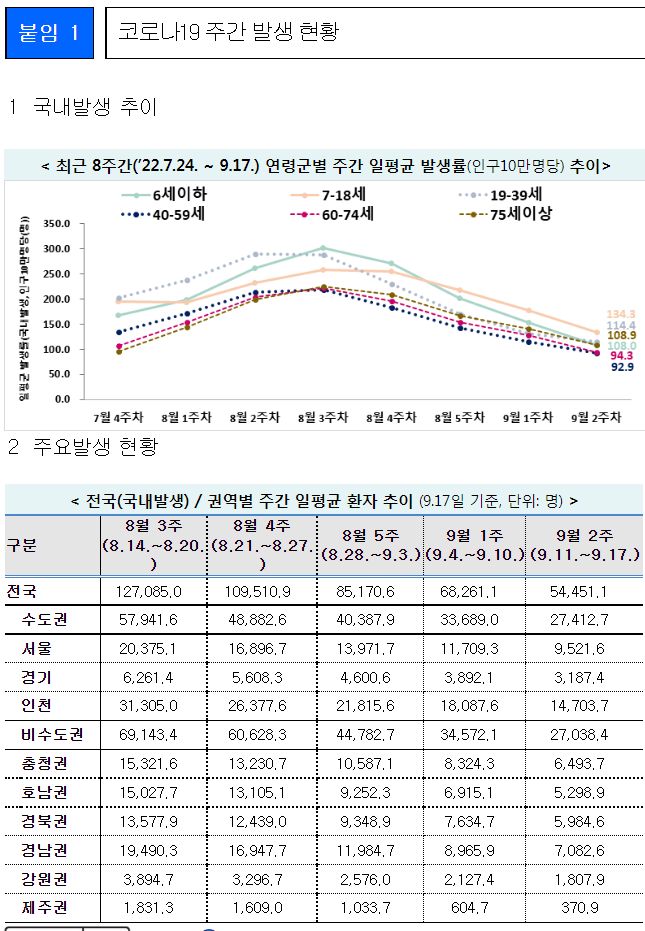 코로나19(2022.9.20) 주간 발생 동향 및 위험도 평가: 중간 본문
