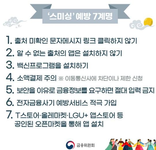 전체 문자사기(스미싱)의 44%가 명절시기에 발생/:/ 주요 문자사기 유형(금융위원회, SKT)과 주의점 본문
