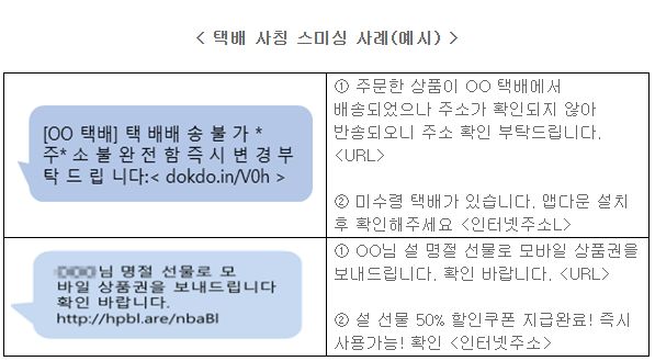 [IT동아 정연호 기자] 추석연휴를 앞두고 정부당국은 스마트폰을 통한 택배 배송, 금융 지원 등을 사칭한 문자사기, 지인 명절인사로 위장한 메신저 피싱에 대해 주의를 당부했다. 지