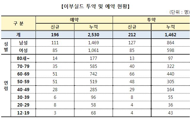 주간 코로나19 예방접종 현황(9.15.~9.21.)
