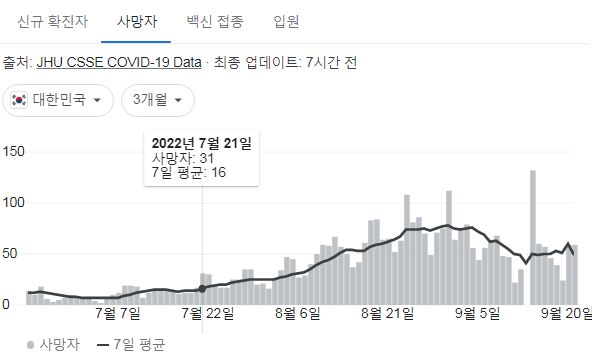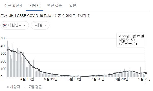 코로나19집계(2022.5.22. 0시기준) 확진 +3.3만, 사망 +59명, 중환자병상가동률 25%, 재택치료 22만 /:/ 주간 코로나19 예방접종 현황(9.15.~9.21.)