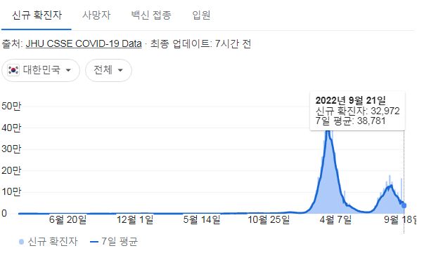 | 코로나19집계(2022.9.21. 0시기준) 확진 +4.1만, 사망 +59명, 중환자병상가동률 27%, 재택치료 24만 (0) | 2022.09.21 |