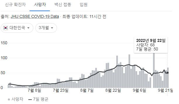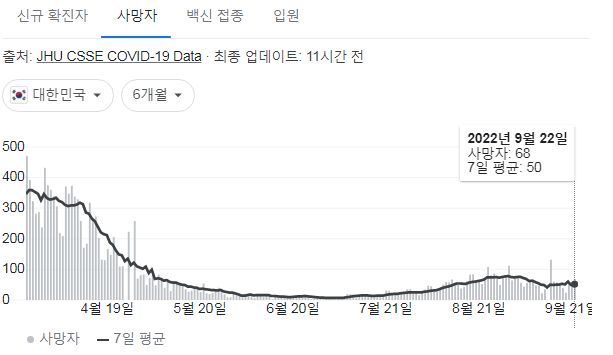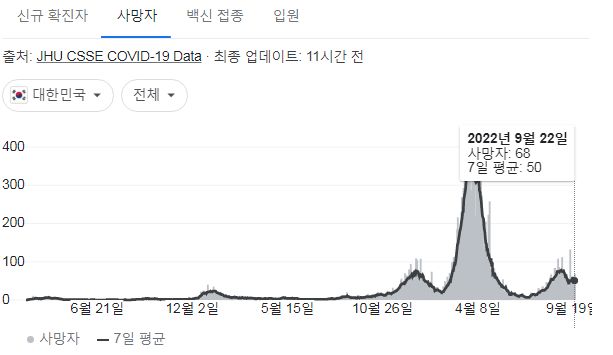 그래서 확진자가 줄어든 것에 비해 사망자 감소는 그렇지 못합니다. 물론, 올해 봄 유행때보다는 둘 다 확 줄어있습니다.