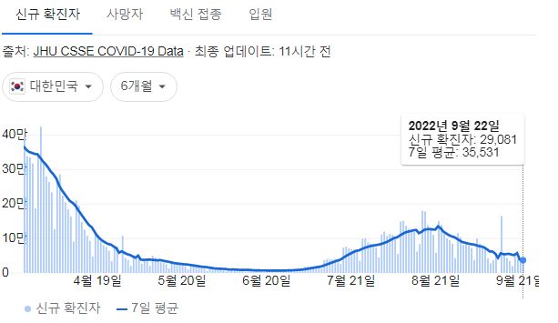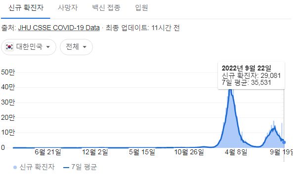 | 코로나19집계(2022.5.22. 0시기준) 확진 +3.3만, 사망 +59명, 중환자병상가동률 25%, 재택치료 22만 /:/ 주간 코로나19 예방접종 현황(9.15.~9.21.) (0) | 2022.09.22 |