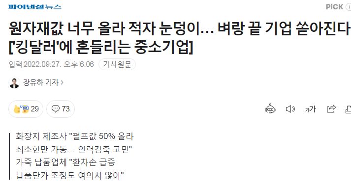 원자재값 너무 올라 적자 눈덩이… 벼랑 끝 기업 쏟아진다 ['킹달러'에 흔들리는 중소기업]