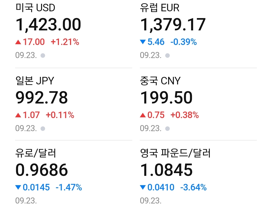 영국 정부가 대규모 국채 발행을 전제로 한 70조 원대 감세 정책을 발표하면서 파운드화가 급락해 미국 달러와 가치가 동등해지는 ‘패리티’를 눈앞에 뒀다. 유럽 통화가치가 달러화 초강세,
