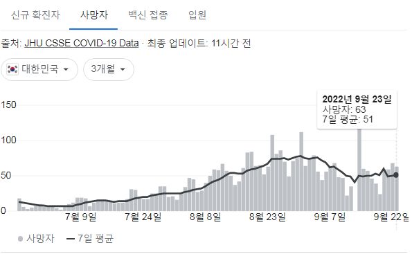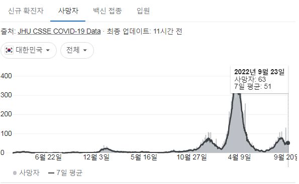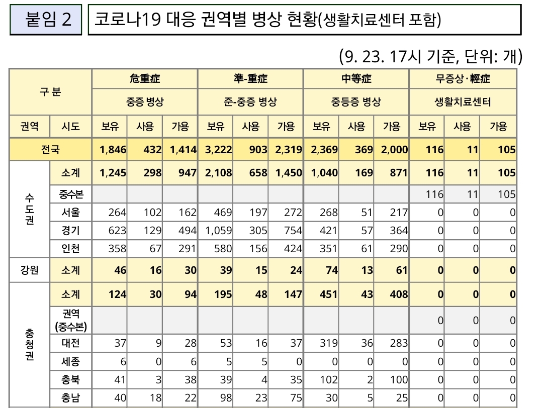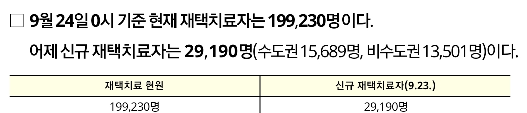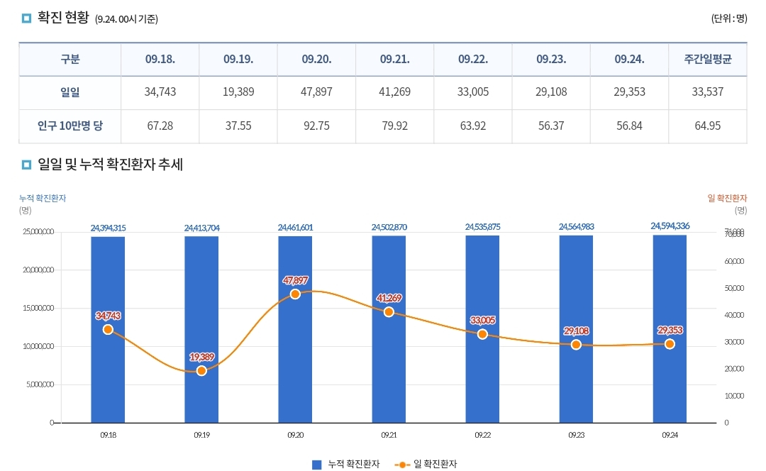코로나19집계(2022.9.24. 0시기준): 확진 +3.9만, 사망 +63명, 위중증병상가동률 24%, 재택치료 20만 본문