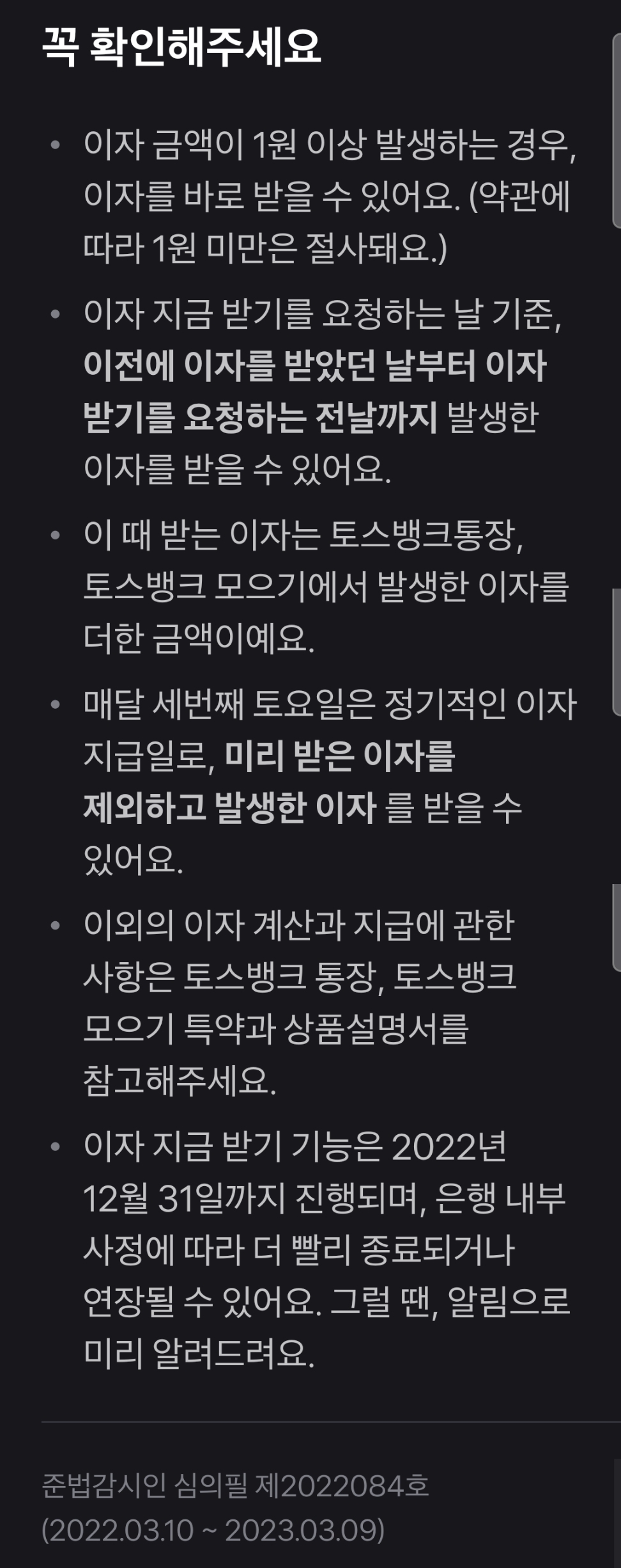 매일 눌러주어 원금산입해주는 게 좋다는 안내문. 그냥 두면 매달 1회 입금되는 월복리식.