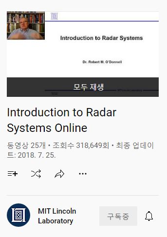 Introduction to Radar Systems Online (레이더 시스템 개론) (유튜브 강의) 본문