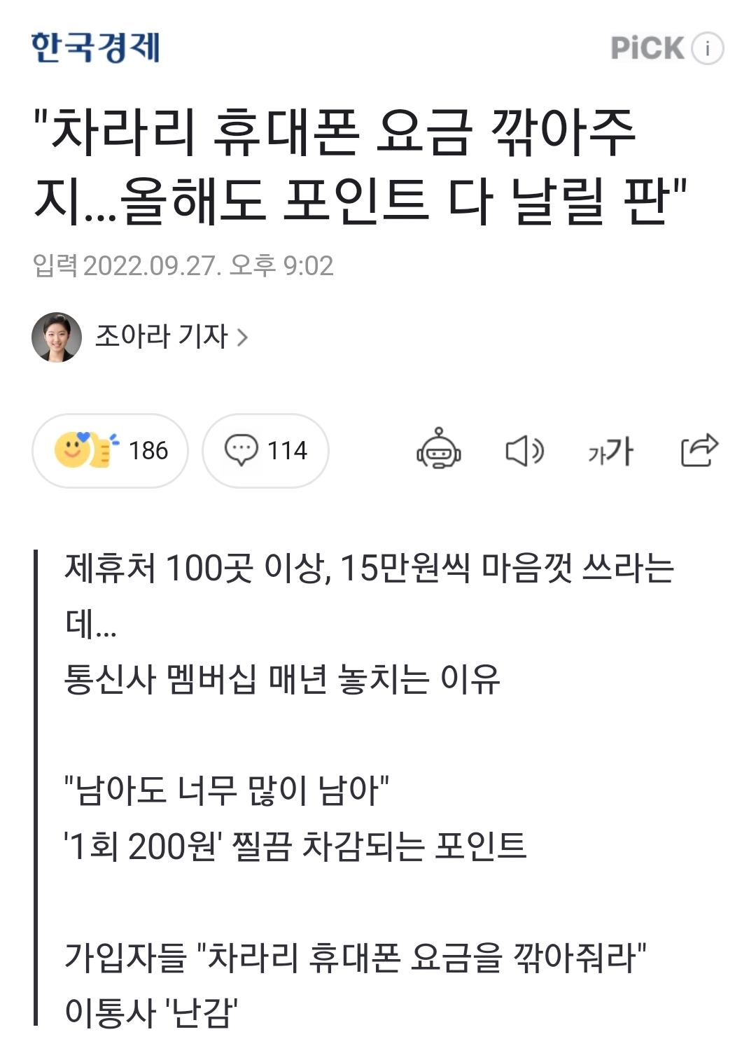 "차라리 휴대폰 요금 깎아주지…올해도 포인트 다 날릴 판"