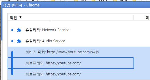 Shift+ESC 키를 눌러 크롬 작업관리자를 엽니다.