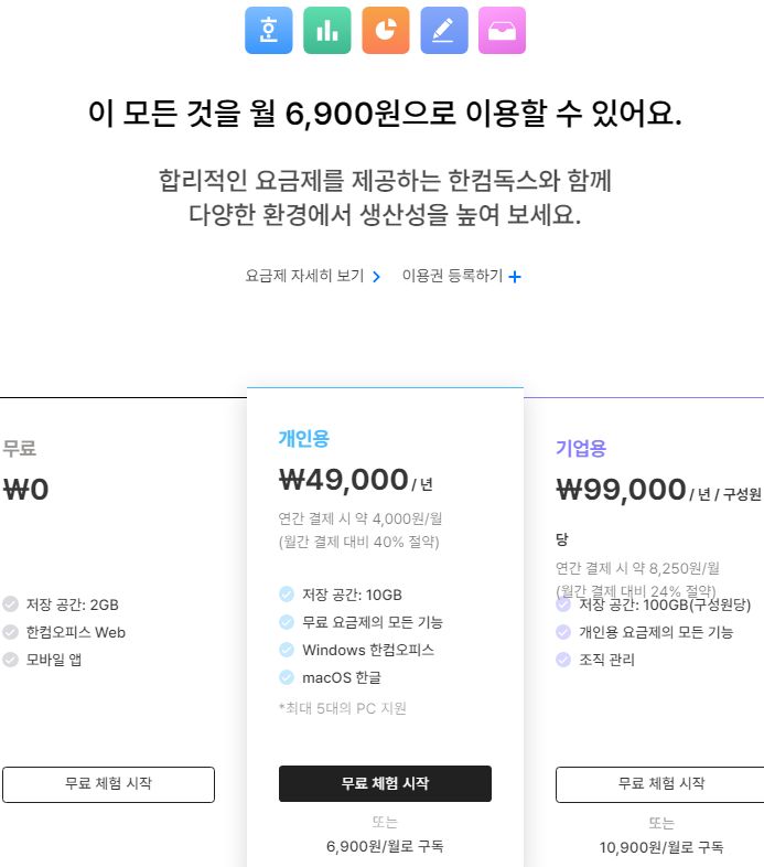한컴독스: 한컴오피스의 구독형 상품 본문