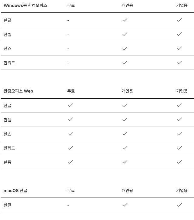 이걸 내면서, 개인용 한컴오피스(영구판)는 없앤다는 말이 있더군요. MS것과 비슷하게 무료사용자용 한정판 서비스도 있습니다.